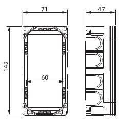 Det er plass til en enhet med trippelinntak. Om nødvendig kan boksen deles i to ved hjelp av skilleplate PMR 345. Laget av halogenfritt material (IEC/61249-2-21) og oppfyller kravene for glø