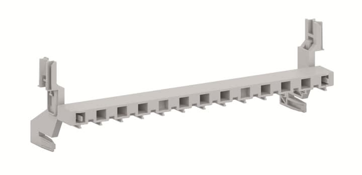 Montasjebruen ZK19 passer til ComfortLine skapene fra ABB Striebel & John, og den kan monteres enkelt inn i toppen og bunnen av skapet med de medfølgende hurtigfestene, slik at hurtigklemmene N/PE kan monteres rask og enkelt på montasjebruen utan bruk av verktøy. Montasjebruen og klemmene er produsert i samsvarer med gjeldende standard DIN VDE 0100 Part 410, og er svært fleksibelt med hensyn til størrelsen på klemmene og utvidbarhet. Modulariteten og det omfattende utvalget hurtigklemmer, gjør det mulig å konfigurere klemmene nøyaktig etter behov. Materialet er i termoplastikk og farven er RAL7035 lys grå.H=20mm x B=205,5mm x D=15mm