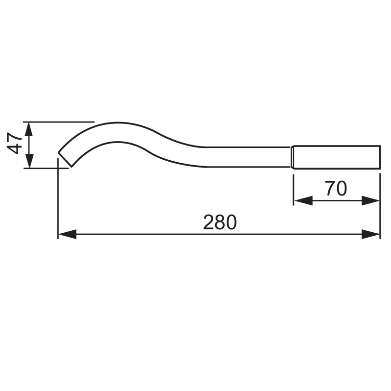 Rørbøy 20mm, 45°, utvidet i den lange enden for tilkobling av rør uten bruk av muffe, 750N