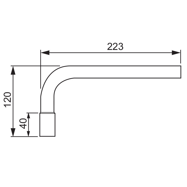 Rørbøy 20mm, 90°, utvidet i den korte enden for tilkobling av rør uten bruk av muffe, 750N