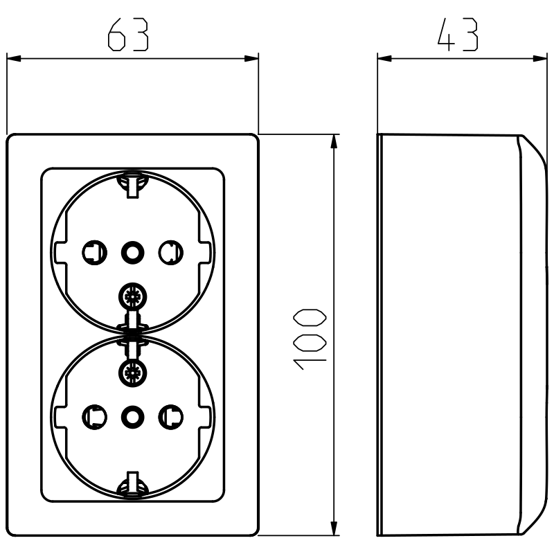 Dobbel stikkontakt m/jord, påvegg, hurtigklemmer med mulighet for 4 tilkoblinger pr. fase. Produsert av bærekraftig materiale, bio-sirkulært materiale benyttet i underdel og frontplate