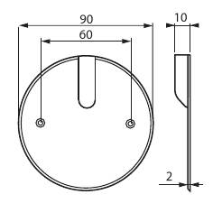 Vegglokk m/utsparing og skruefeste. Diameter 90 mm, STL-U 60. Avstand mellom skruene er 60 mm. Laget av halogenfritt material (IEC/61249-2-21).