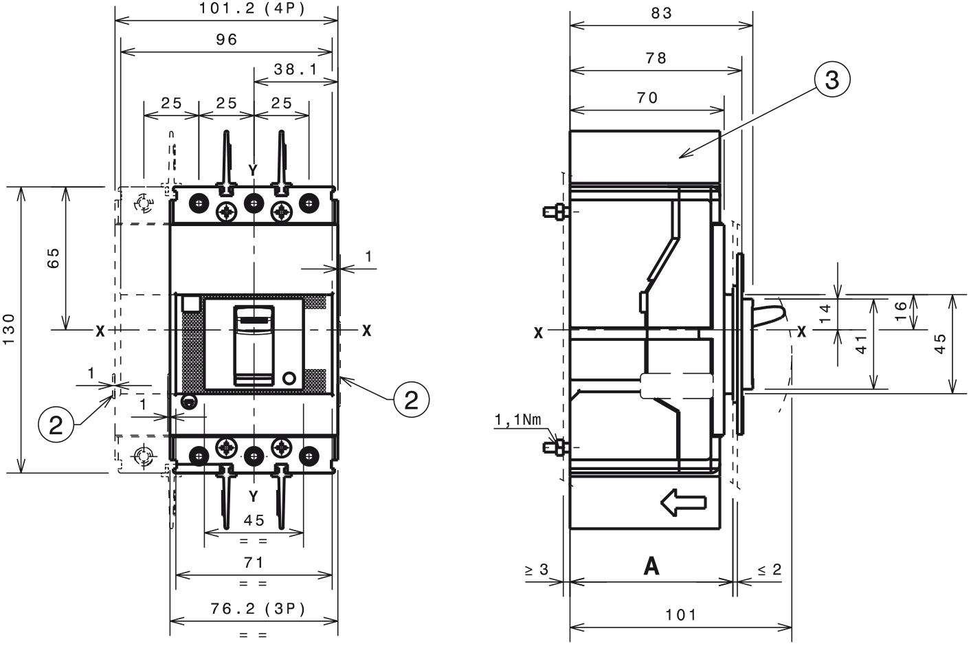 Tmax XT XT1 kompaktbryter med termomagnetisk vern og nominell strøm fra 16 til 160A i 3 og 4pol utførelse. Bryteevne (B, C, N, S og H) gir Icu 18, 25, 36, 50 og 70kA@415V og 3, 4, 6, 8 og 10kA@690V. Vernet er stillbar termisk i område 0,7-1xIn og har fast kortsluttningsbeskyttelse på 450A (In=16-40A) og 10xIn ved In=63-160A). Bryteren leveres for fast montering og har som standard frontilkobling på hovedklemmer.