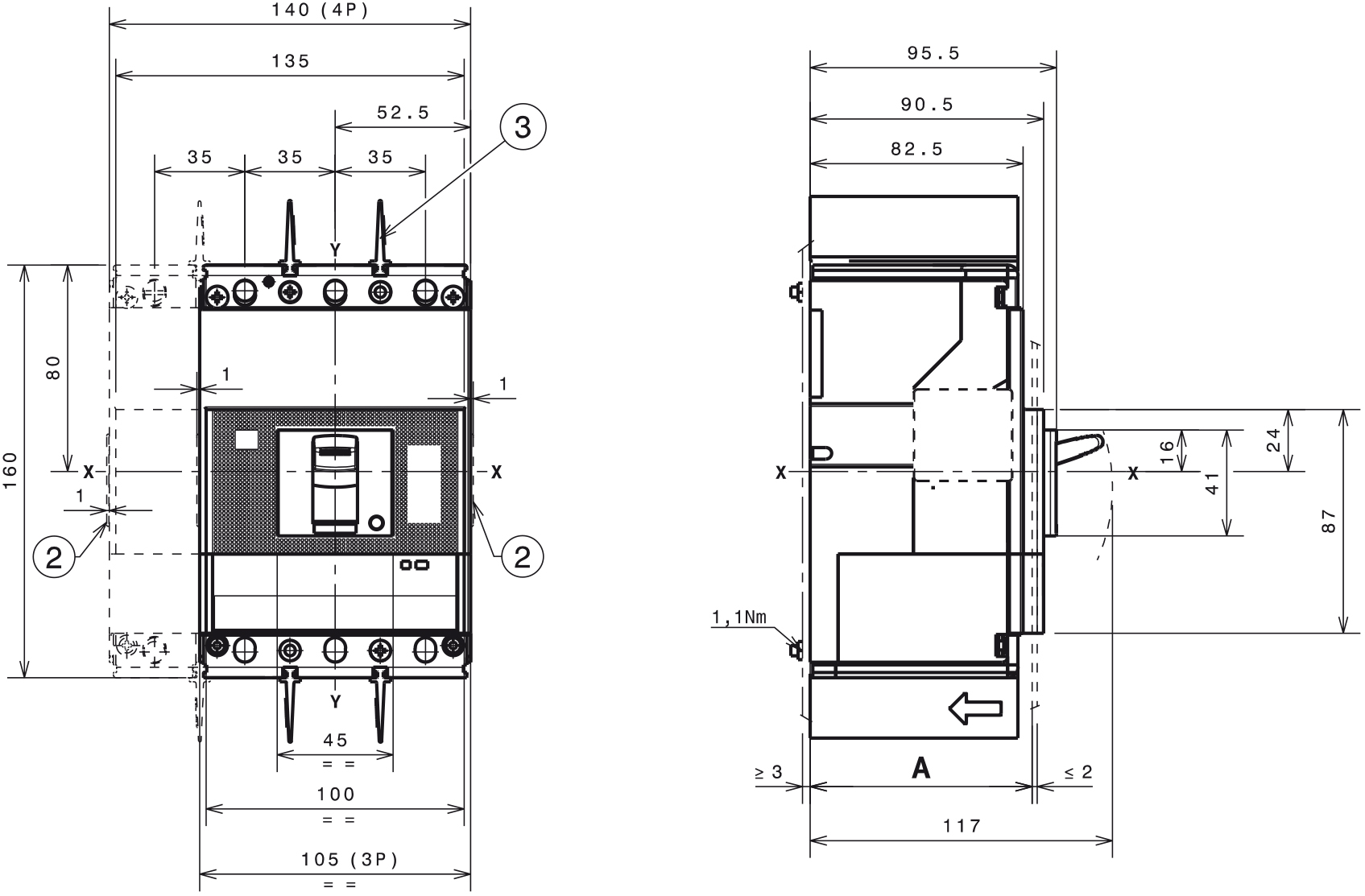 Nominell verdi kortslutningsbryteevne Icu ved 400 V, 50 Hz - 36 kA