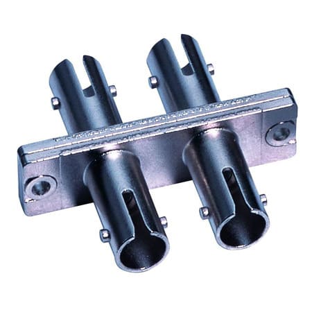 ST-ST duplex adapter. H=9,3mm, B=34,8mm, L=30mm. Phosphor bronze sleeve, metall hus. Typical insertion loss (Db) at 1310nm = 0,25
