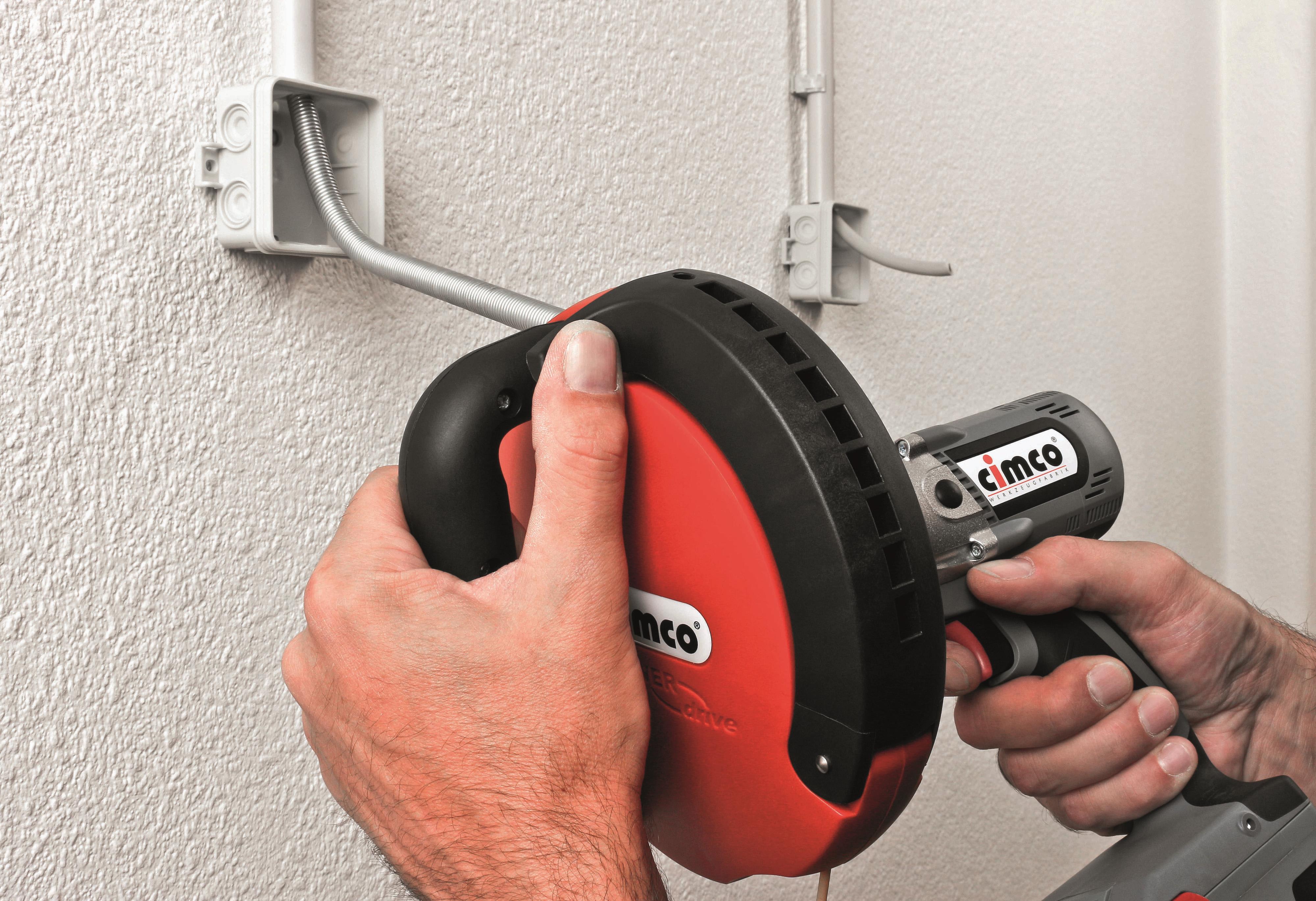 Powerdrive mateenhet for rask transport av glassfiber trekkefjær (Ø 3,0 mm) inn i rør. Mateenheten kobles til en drill via implementert ¼ "hex-tilkobling. For problemfri drift, anbefaler vi at det benyttes trekkefjær fra KatiBlitz utvalget og styre hoder.