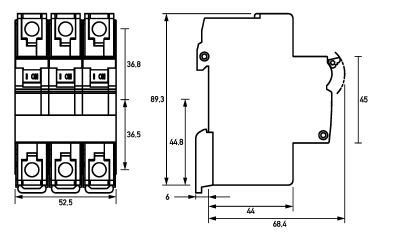 Overbelastningsvern 63Amp 3pol og 3 modul bredde DIN-utførelse i serien MCB (hovedsikring OV). Serien leveres i 2pol-3pol-3pol+N i 25-32-40-50-63Amp størrelse. Bryteevne 10kA 230/400V. DIN VDE 0660 Teil 101 / EN 60947 - 2: 07.92