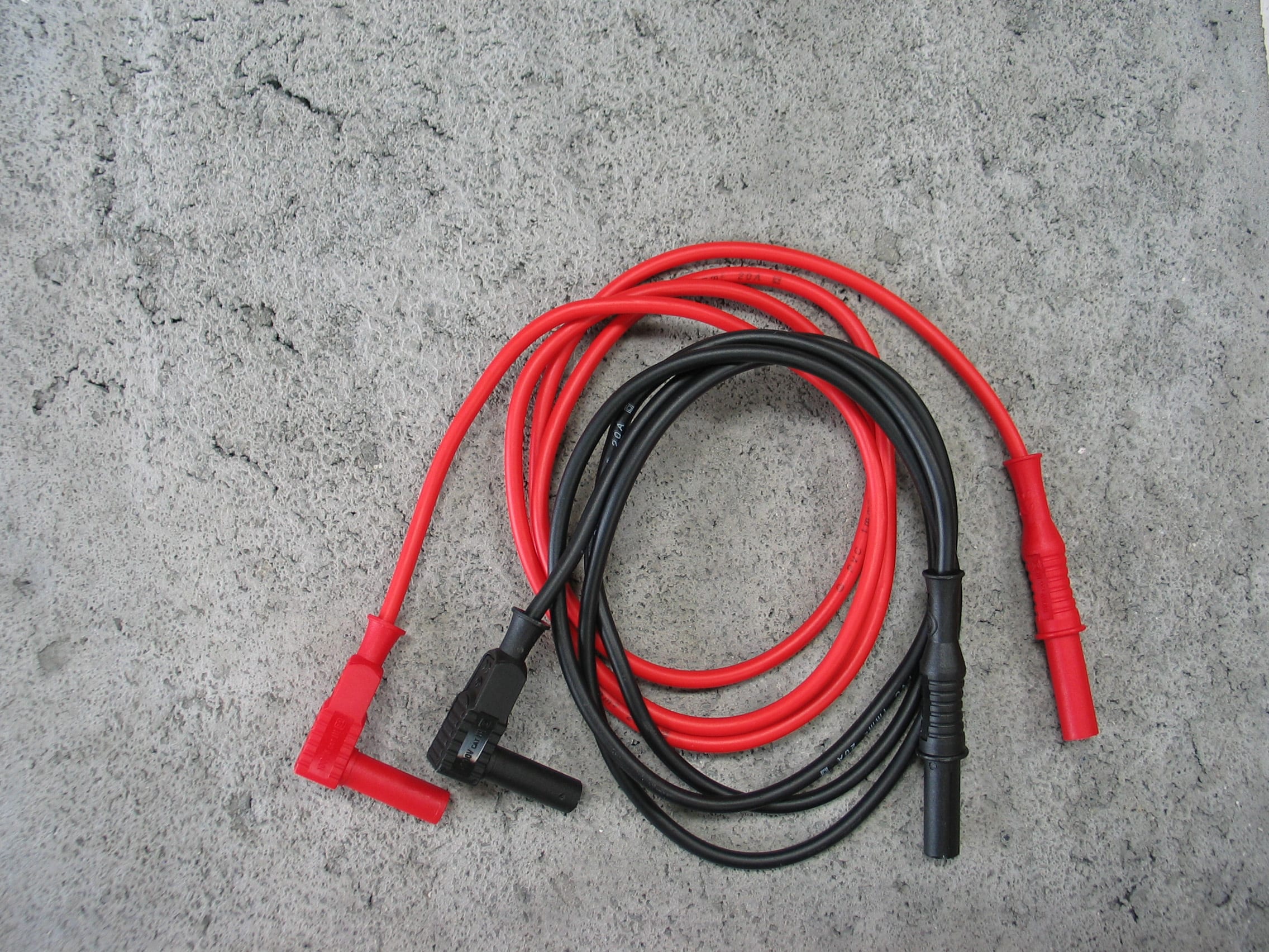 Fleksible silikon måleledninger bestående av 1 stk. rød, 1 stk. sort vinkel/rett 1,5mm2, 100cm, 20A. Tilfredsstiller IEC 61010-1 KAT III 1000V.