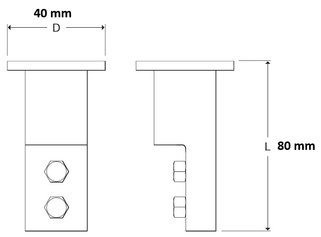 Cu- vegg feste for lynoppfangere Ø 16 mm type CAR0515, CAR1015 og CAR2015. Det er gjenget kopling som har skrueavslutting for tilkobling til kabelsko med nedlederen. I tillegg trengs lynoppfanger veggfester (2 stk - el.nr. 1240402).