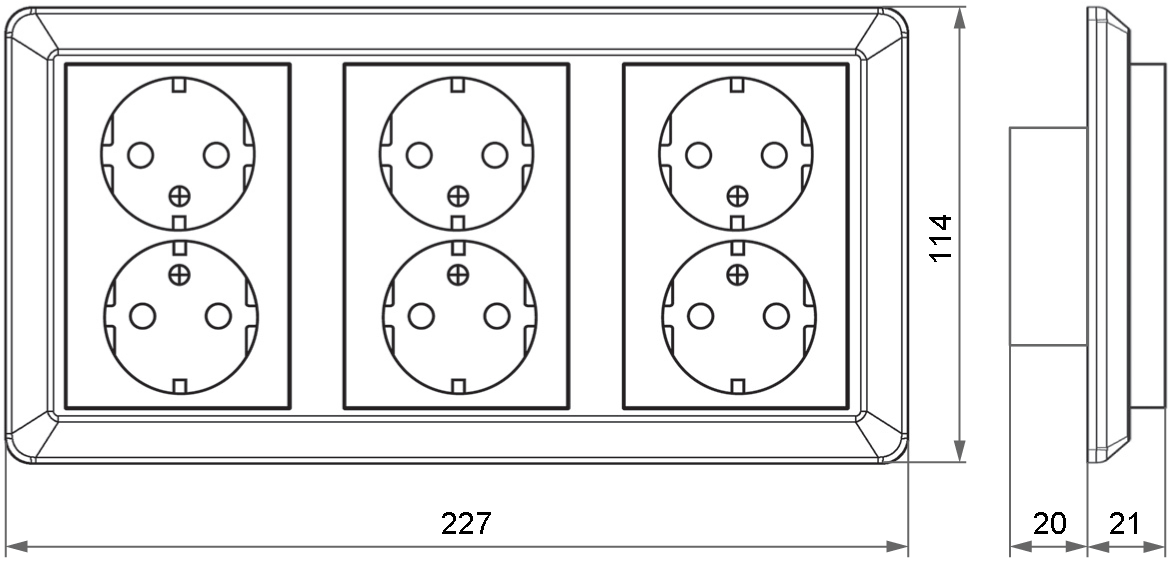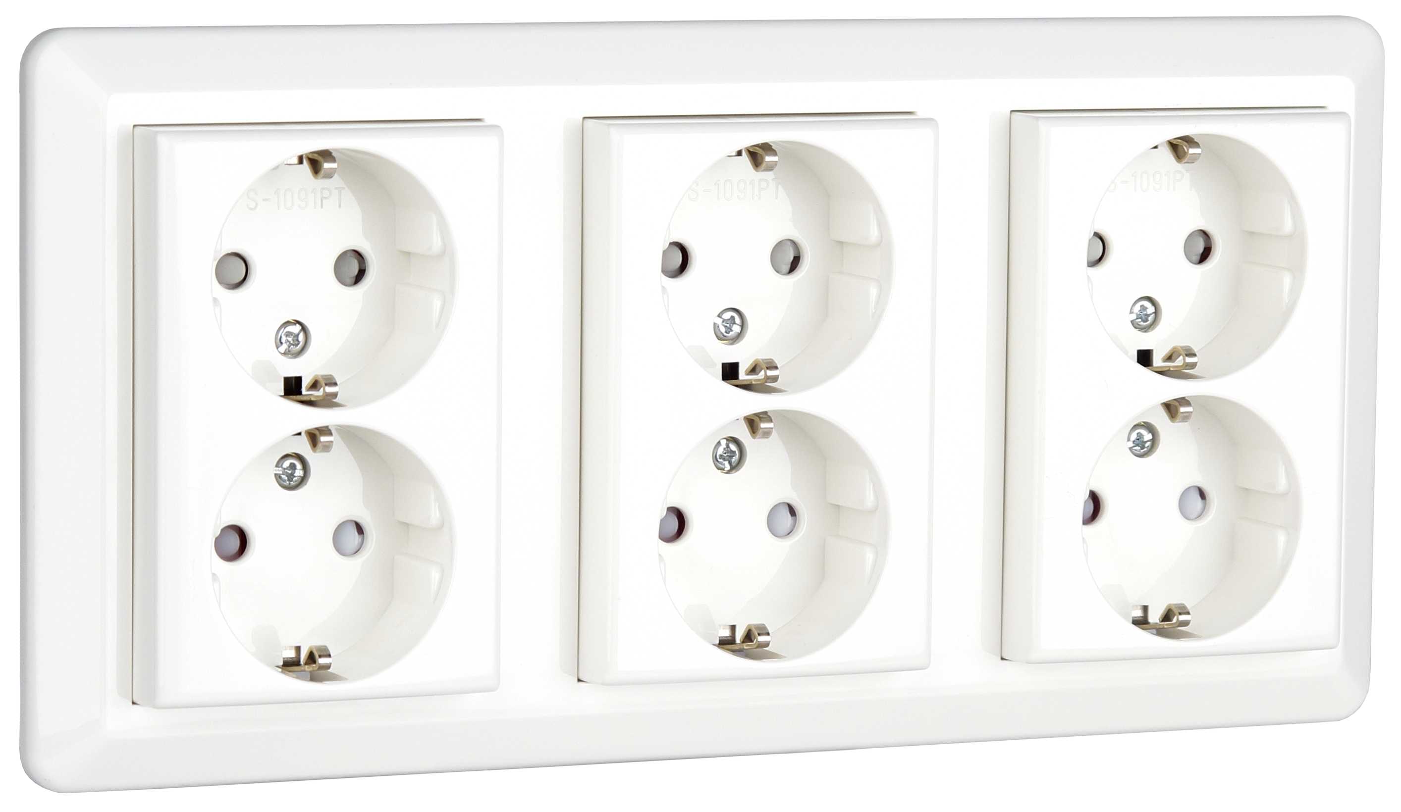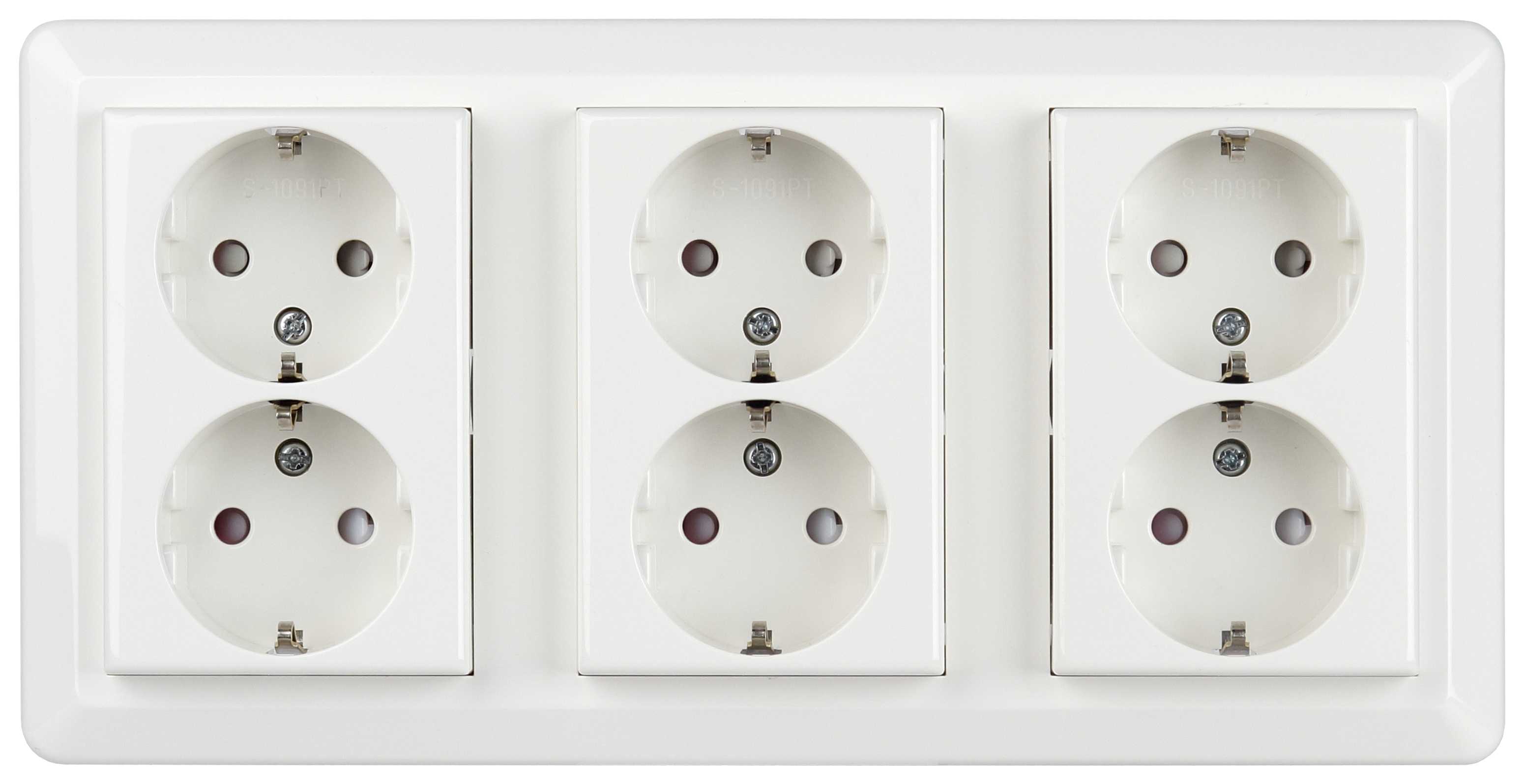 6 veis innfelt stikkontakt