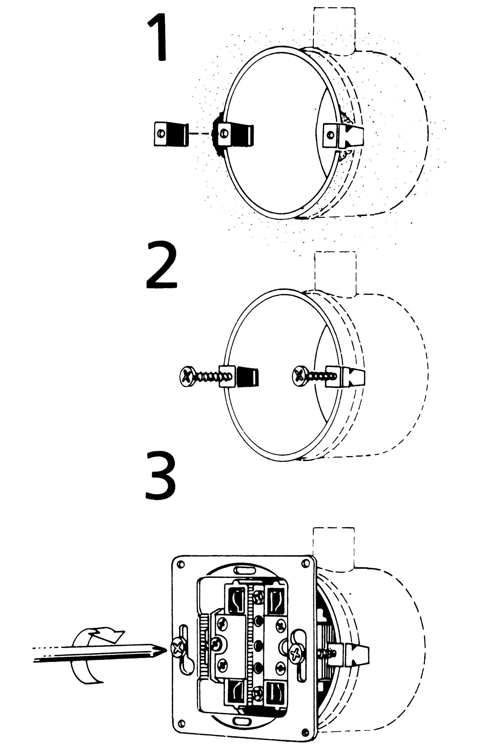 Festeklipsen skyves inn på siden av veggboksen og den medfølgende skruen låser både produkt og festeklipsen i veggboksen.
