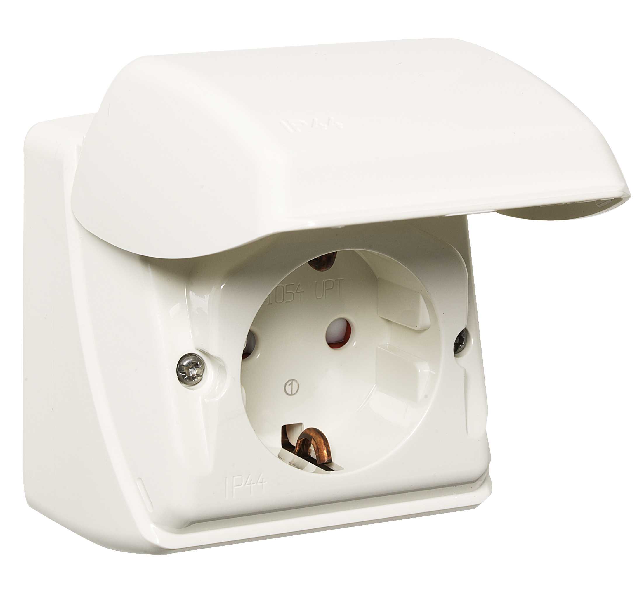 Stikkontaktsokkelen er plassert i et forhøyet trau, slik at eventuell vanninntrenging passerer under trauet og kommer ikke i kontakt med sokkelen.