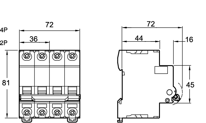 Bryteevne Icn: 10kA 230/400 VAC