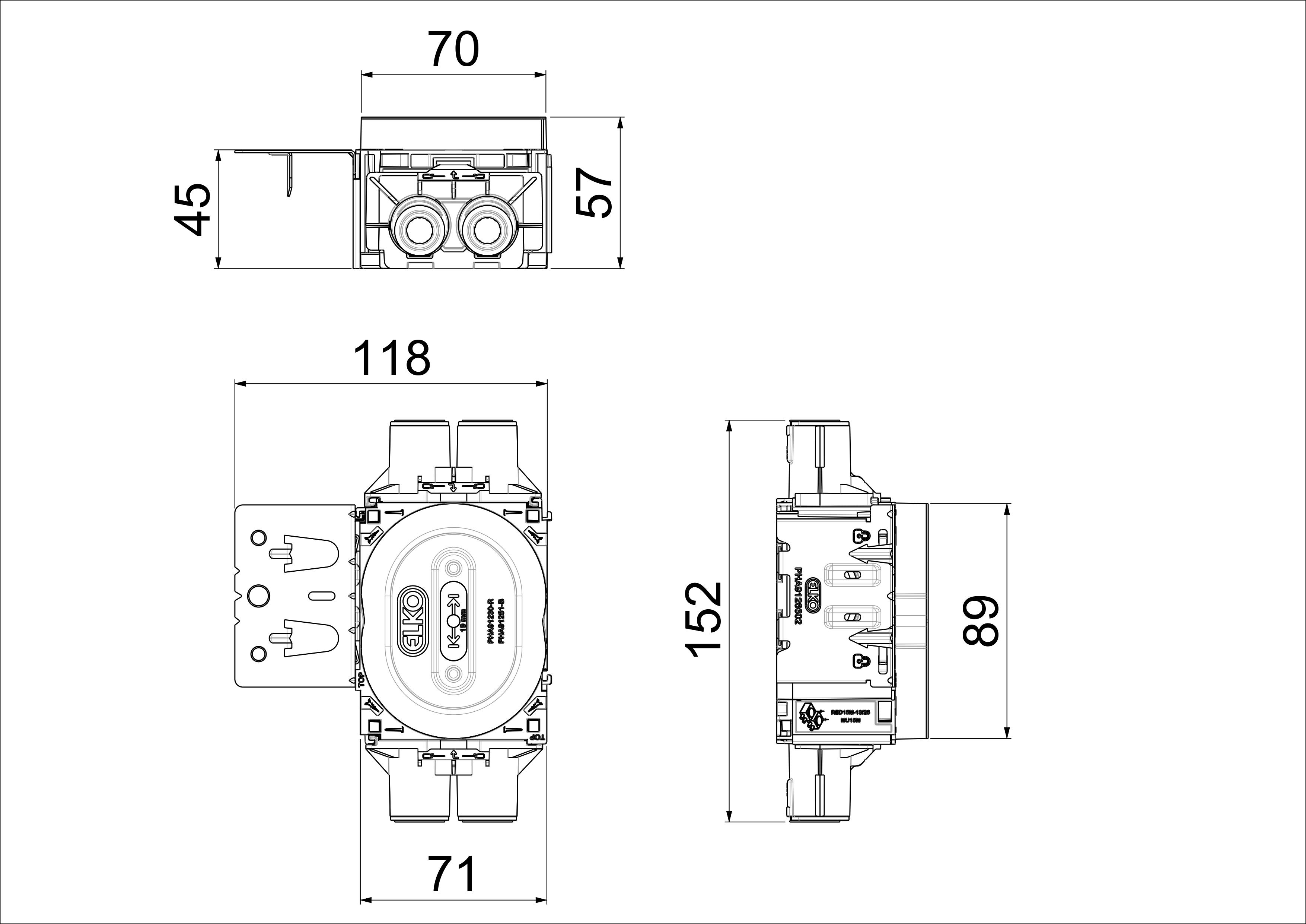 1,5 boksen kan benyttes til alle doble stikkontakter fra ELKO, men må benyttes for å kunne montere ELKO lavtbyggende stikkontakter i RS, Plus eller Option design.