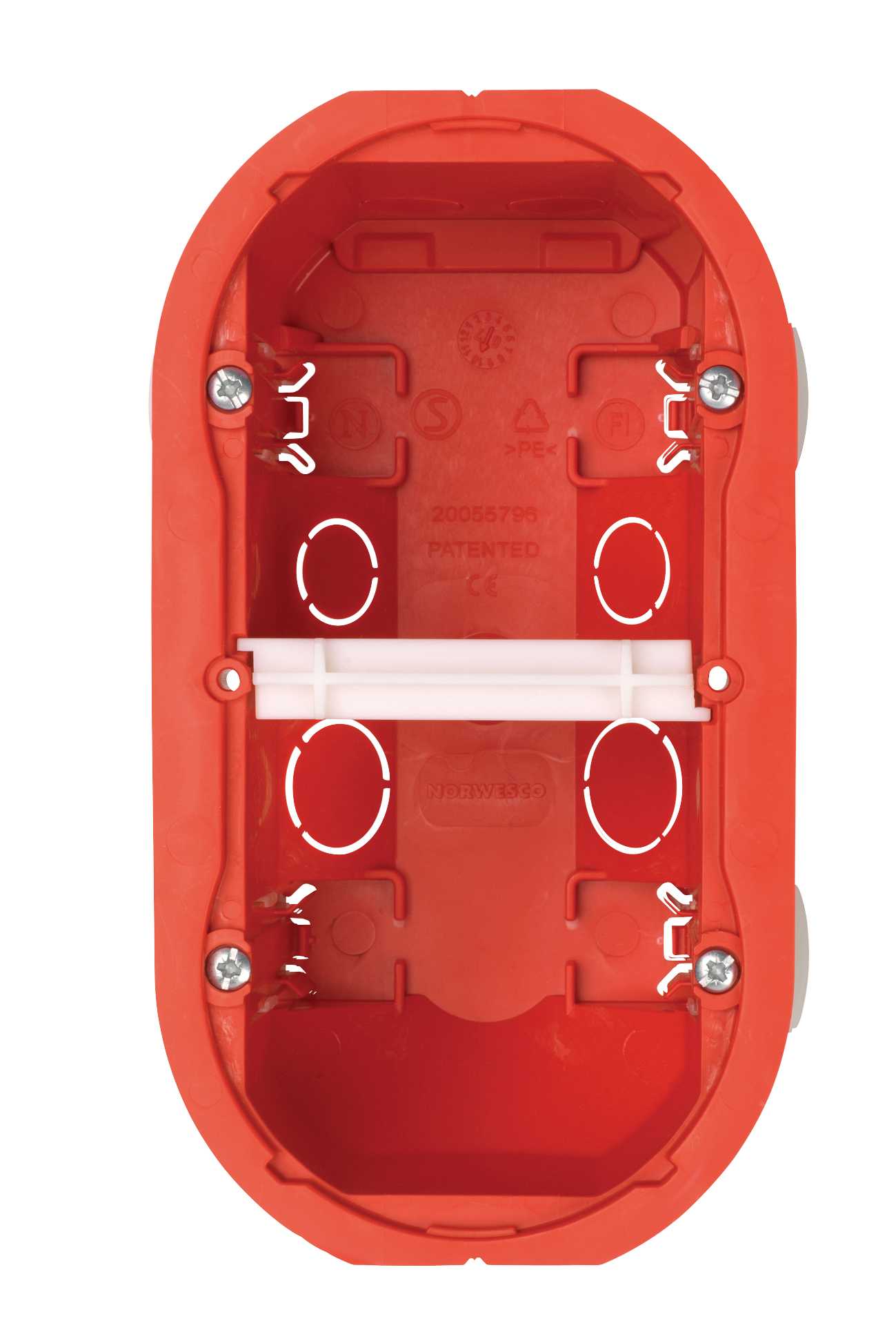 Dobbel multiboks kan bestykkes med alt utstyr i Flexi 20-serien. Ved bruk av rørløs installasjon benyttes strekkavlaster, el.nr. 12 237 78.