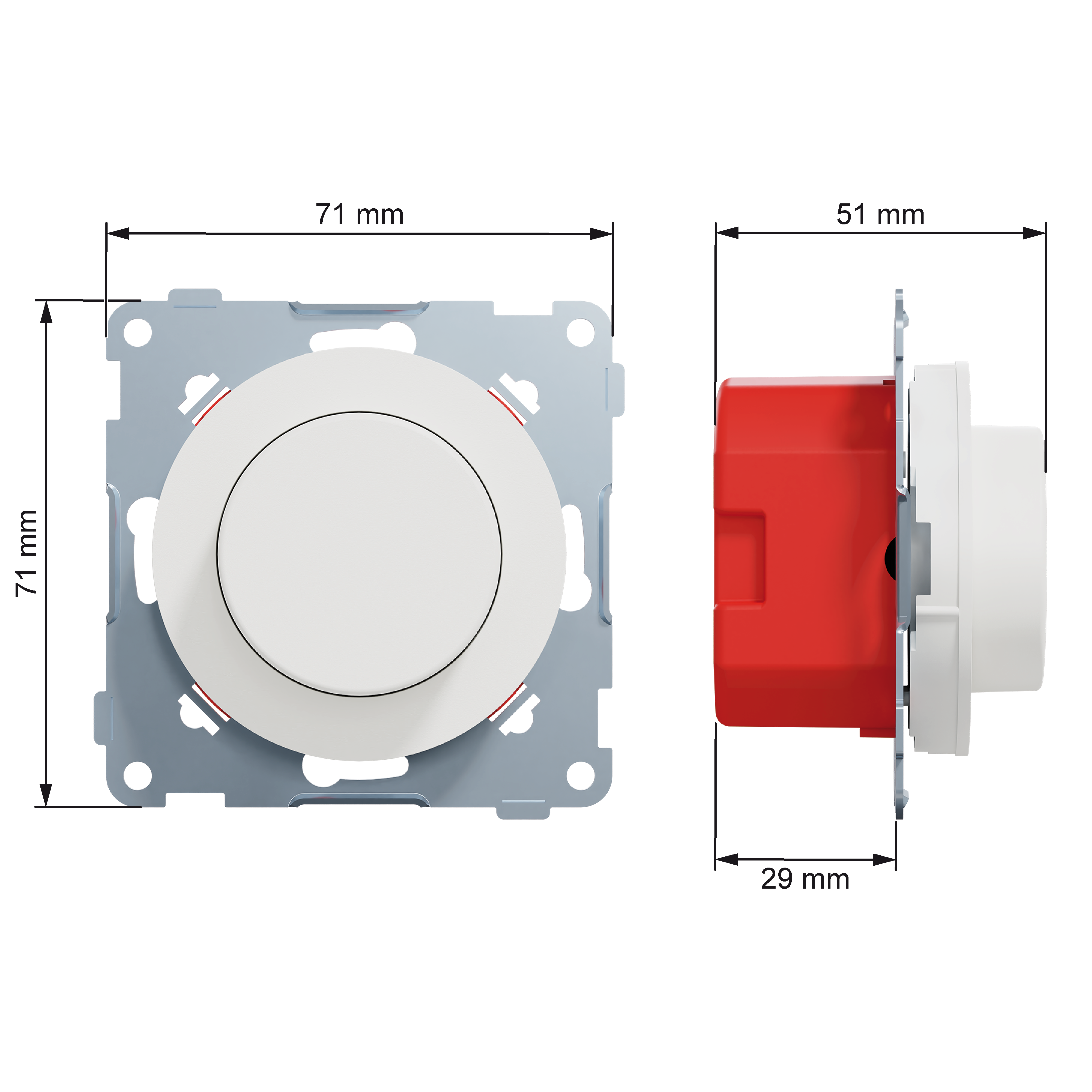 For å justere lyset opp eller ned vris det på dimmerknappen til ønsket lysstyrke, dette kan overstyres via endevender hvis ønskelig. Dimmeren har elektronisk overspenningsvern og kortslutningsvern, og passer inn i standard veggbokser.