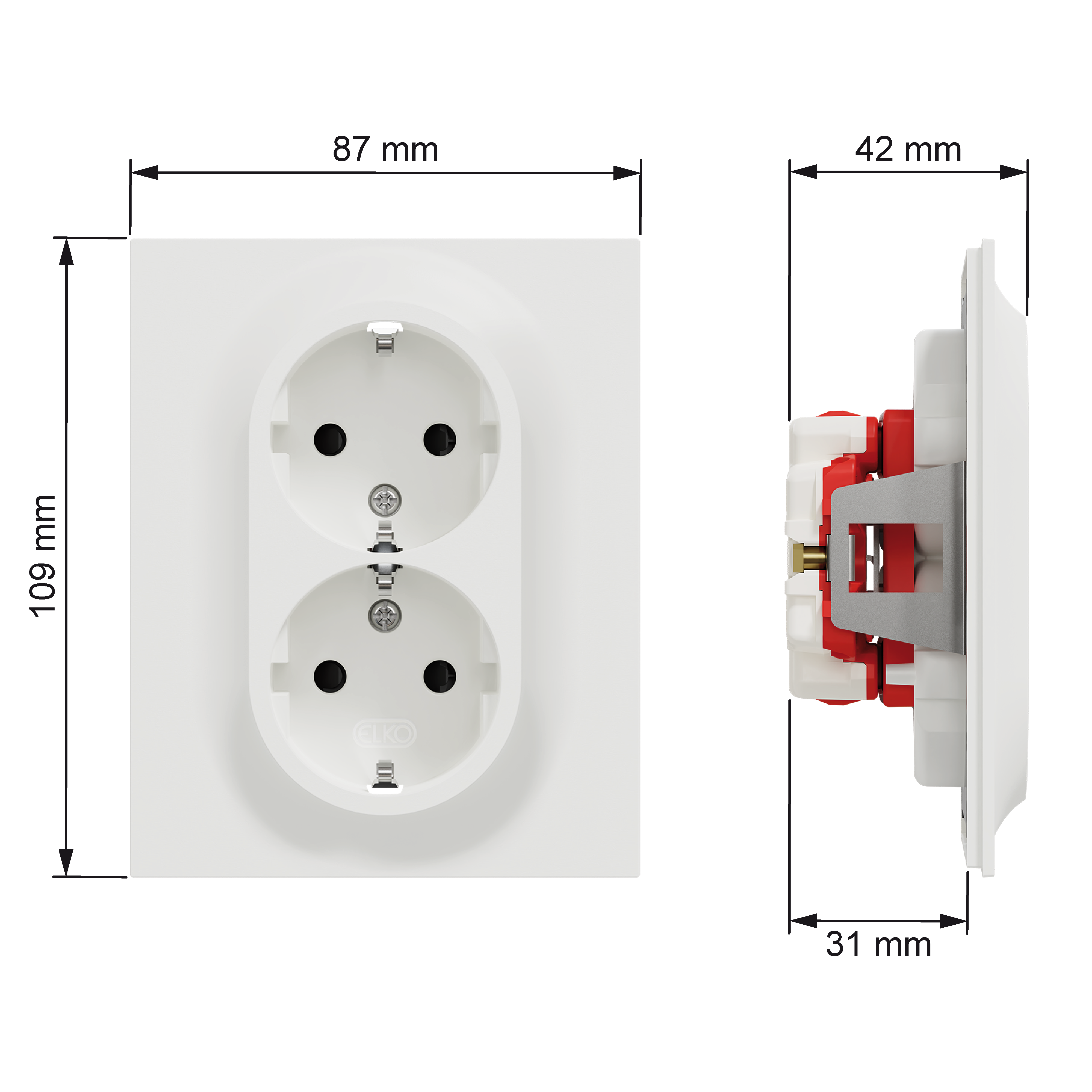 Elko - ELKO One - Dobbelstikk lav med jord hurtigklemme renhvit IP21 - EKO50131