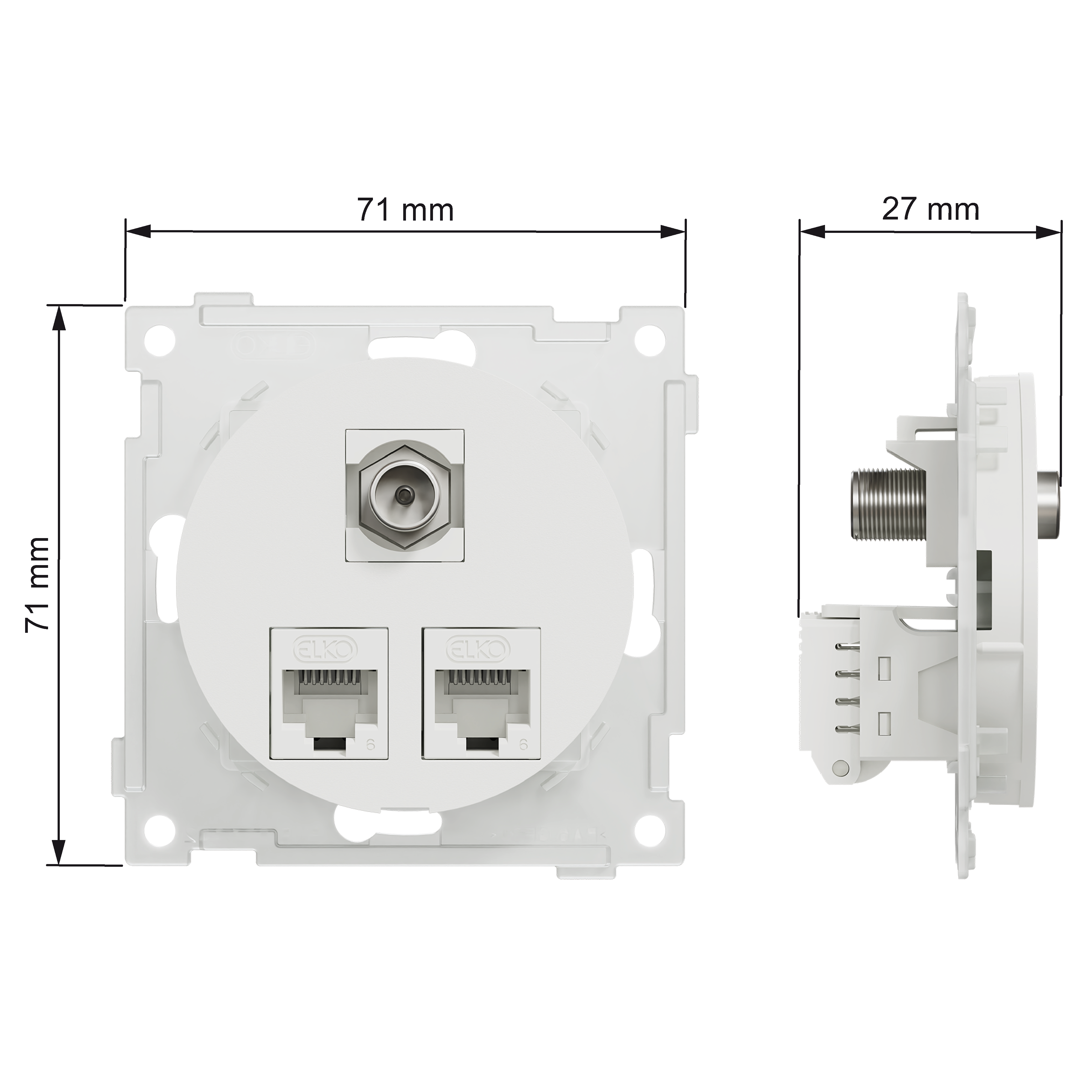 Elko - ELKO One - modularuttak 2x8 kat 6 UTP og 1x F/IEC, renhvit - EKO50121