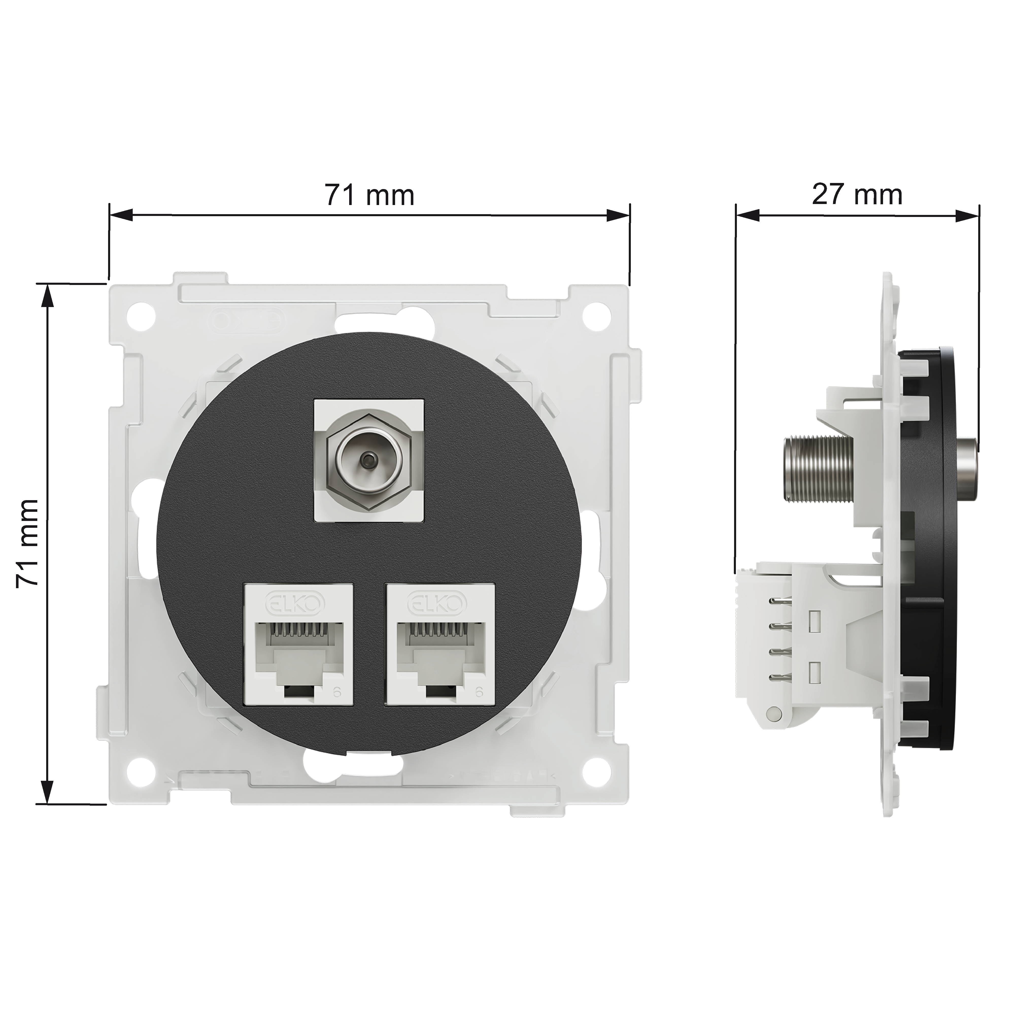 Elko - ELKO One - modularuttak 2x8 kat 6 UTP og 1x F/IEC, sort - EKO50122