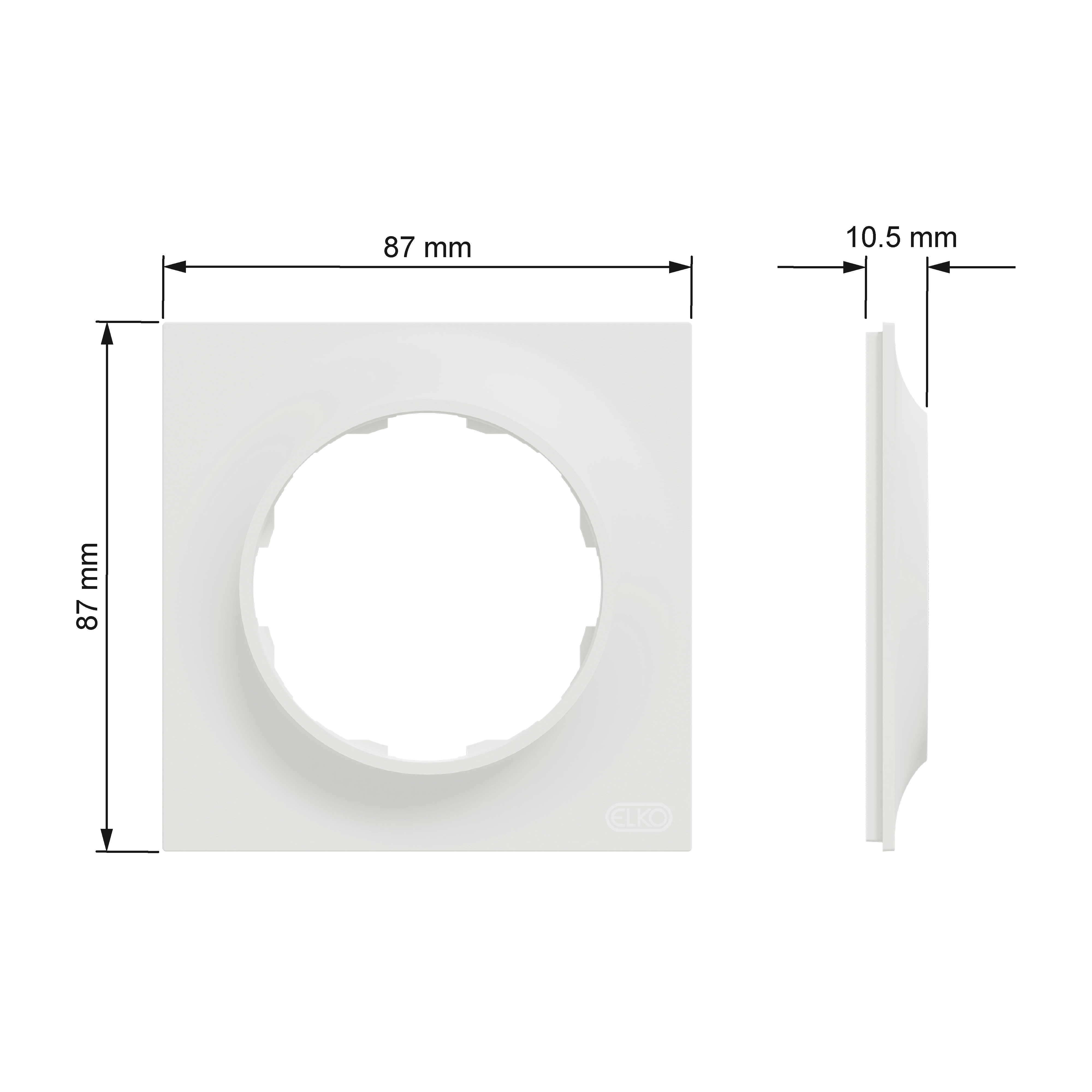 Produktet er laget av resirkulert polykarbonat (PC), og fargen er renhvit (RAL 9003) med matt overflate. IP grad beskyttelse er IP21. For å redusere avfall leveres ELKO One som standard uten ramme, slik at du velger de kombinasjonene som ønskes i installasjonen. Det skal derfor alltid velges ramme i tillegg til produktet.