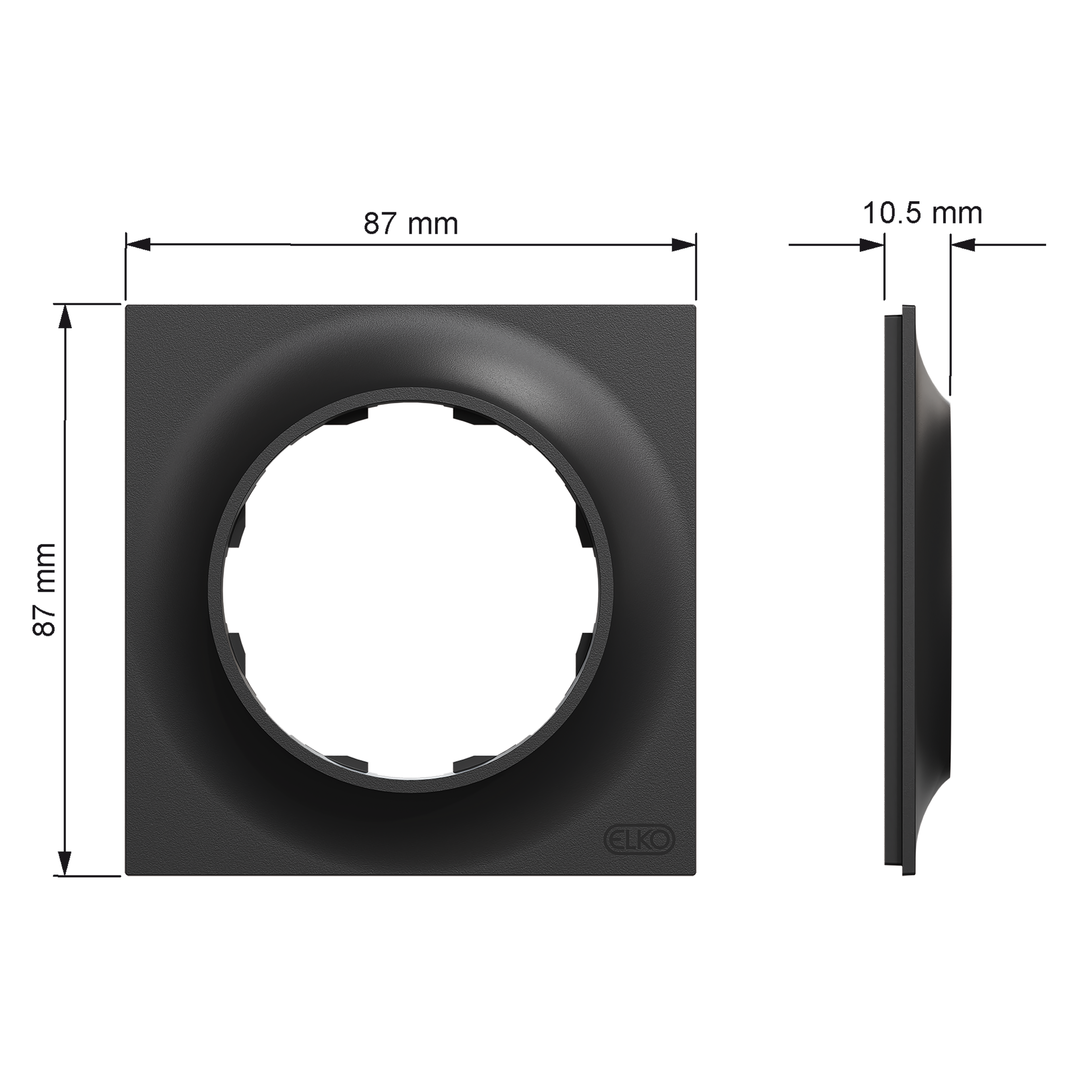 Produktet er laget av resirkulert polykarbonat (PC), og fargen er sort (RAL 9005) med matt overflate. IP grad beskyttelse er IP21. For å redusere avfall leveres ELKO One som standard uten ramme, slik at du velger de kombinasjonene som ønskes i installasjonen. Det skal derfor alltid velges ramme i tillegg til produktet.