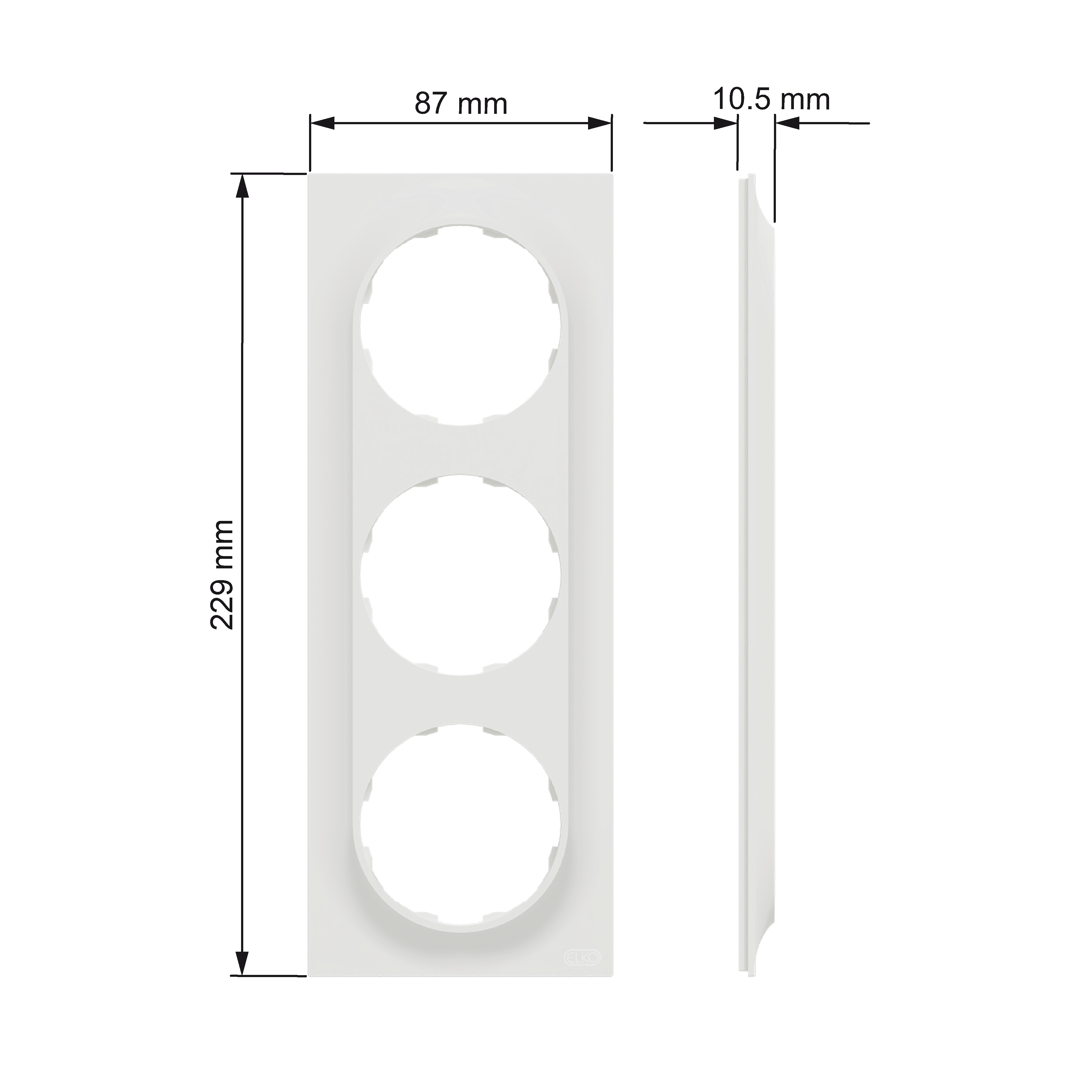 Produktet er laget av resirkulert polykarbonat (PC), og fargen er renhvit (RAL 9003) med matt overflate. IP grad beskyttelse er IP21. For å redusere avfall leveres ELKO One som standard uten ramme, slik at du velger de kombinasjonene som ønskes i installasjonen. Det skal derfor alltid velges ramme i tillegg til produktet.