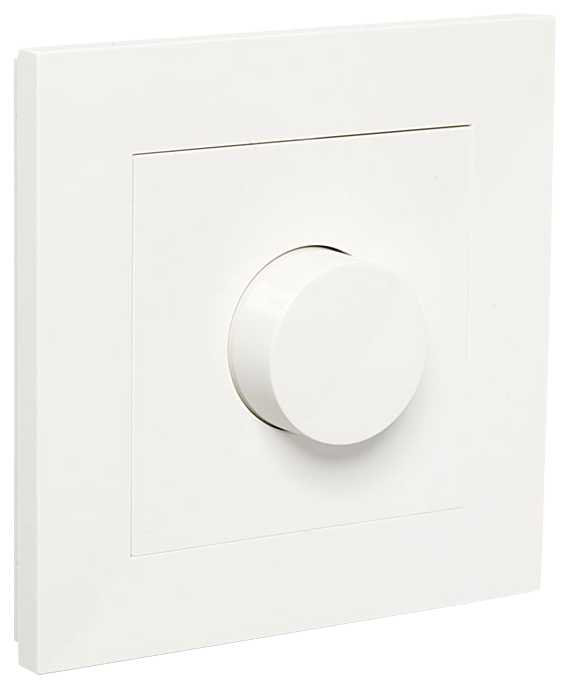 Dimmeren passer inn i standard veggbokser og i alle ELKO kombinasjonsplater.