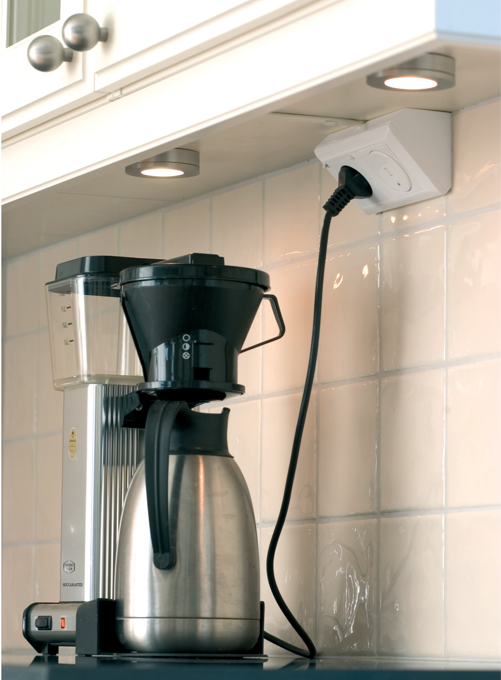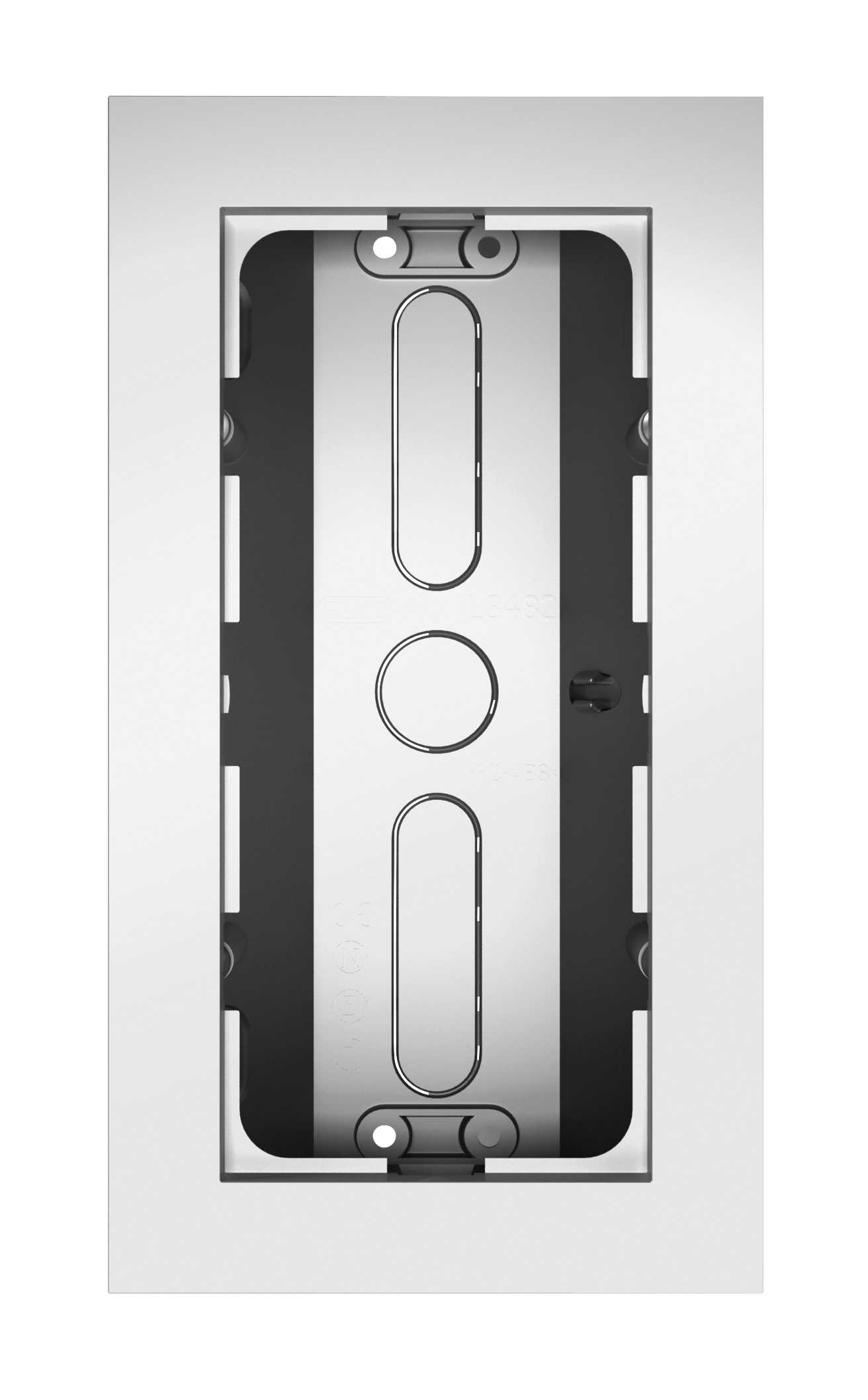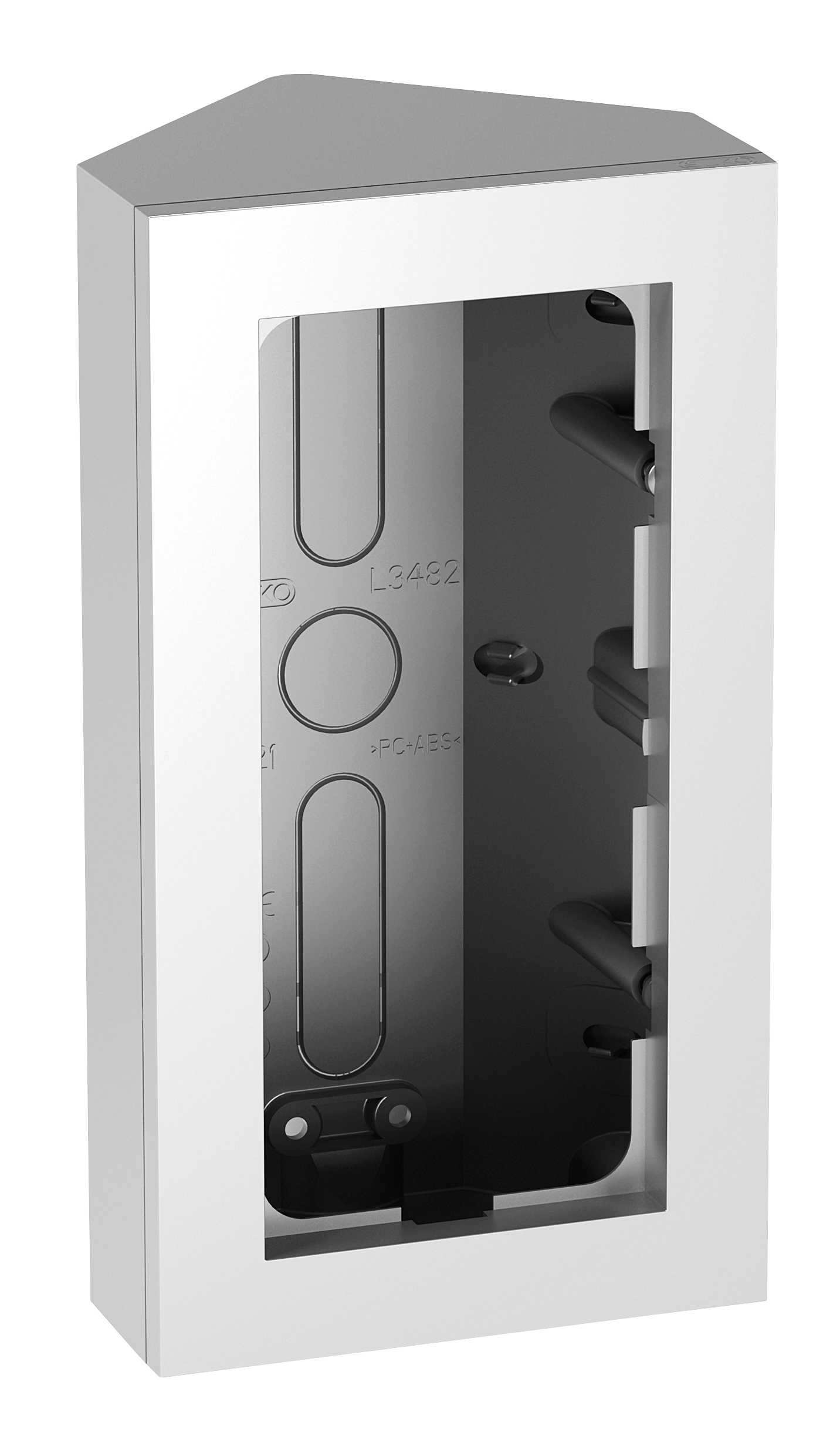 Plus dobbel hjørnekappe påvegg . Hjørnekappen av avtagbart tverrstag for montering av dobbel eller trippel stikkontakt uten ramme. Hjørnekappen passer perfekt under f.eks overskapet på kjøkken, ved behov for stikkontakter, tidsur eller andre standard innfelte produkter.