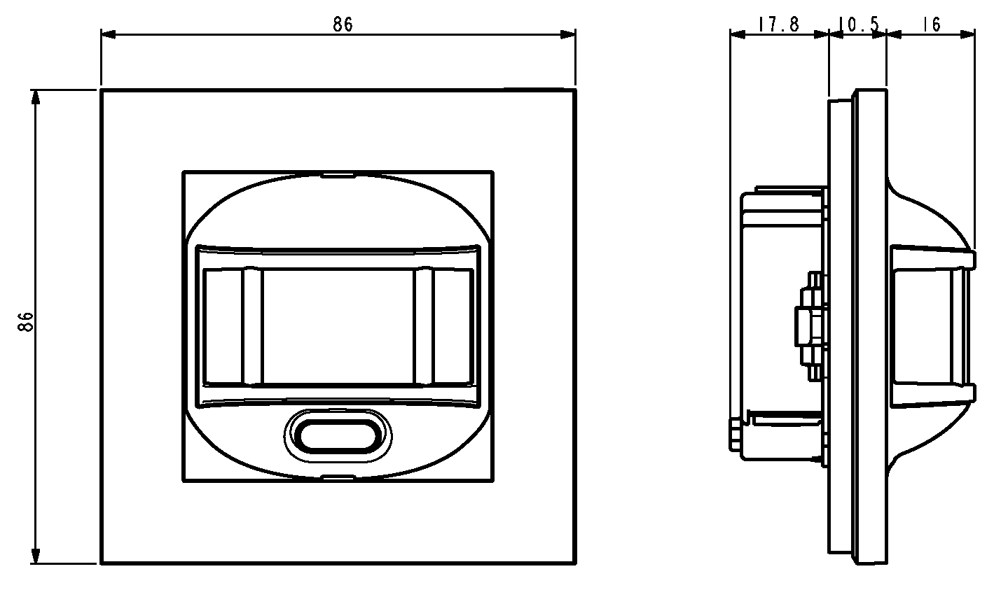 PIR2300 Universal 180º kan monteres påvegg i kombinasjon med påveggskappe. Dersom den skal monteres i en flerhullsramme eller en ELKO OPTION ramme må den medfølgende enkelrammen fjernes.