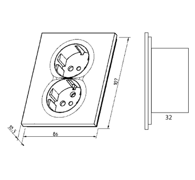 Stikkontakten passer kun i 1,5 veggboks, dersom det er montert enkel veggboks kan en forhøyningskappe benyttes.