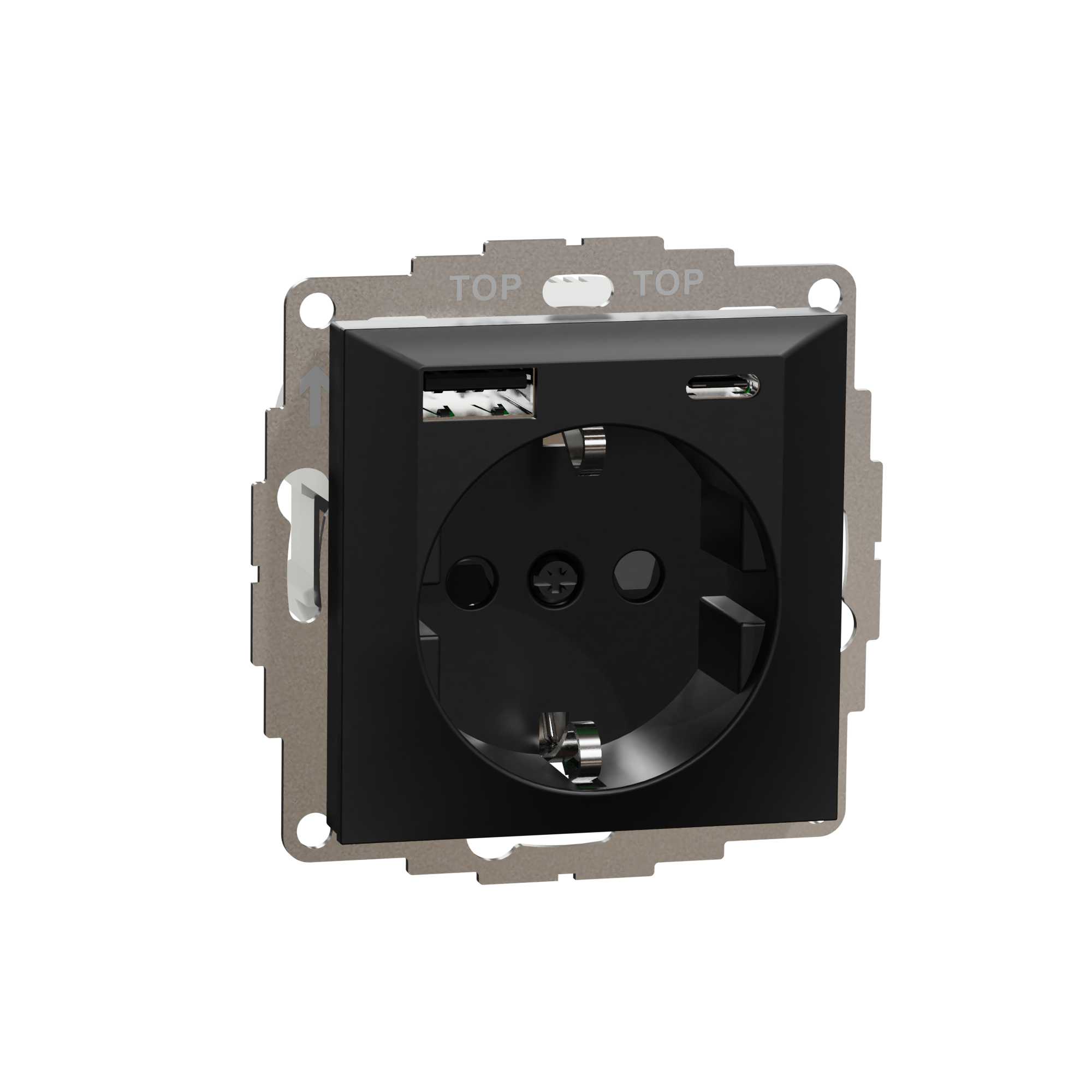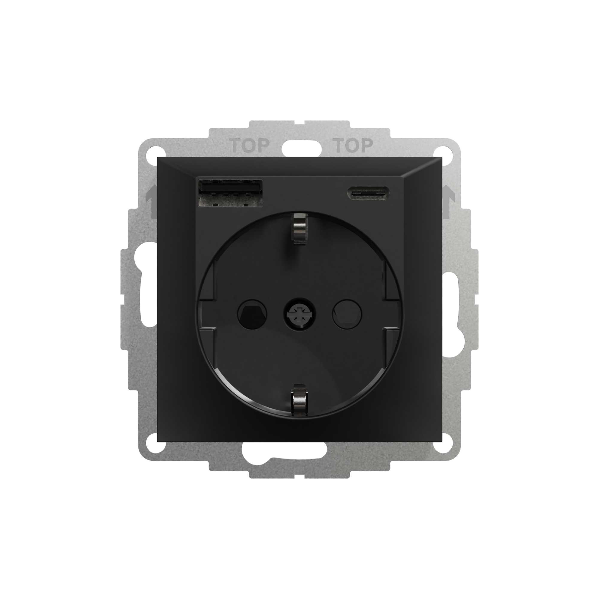 Elko - Enkel stikkontakt med USB-A og USB-C lader for innfelt installering. - EKO07452