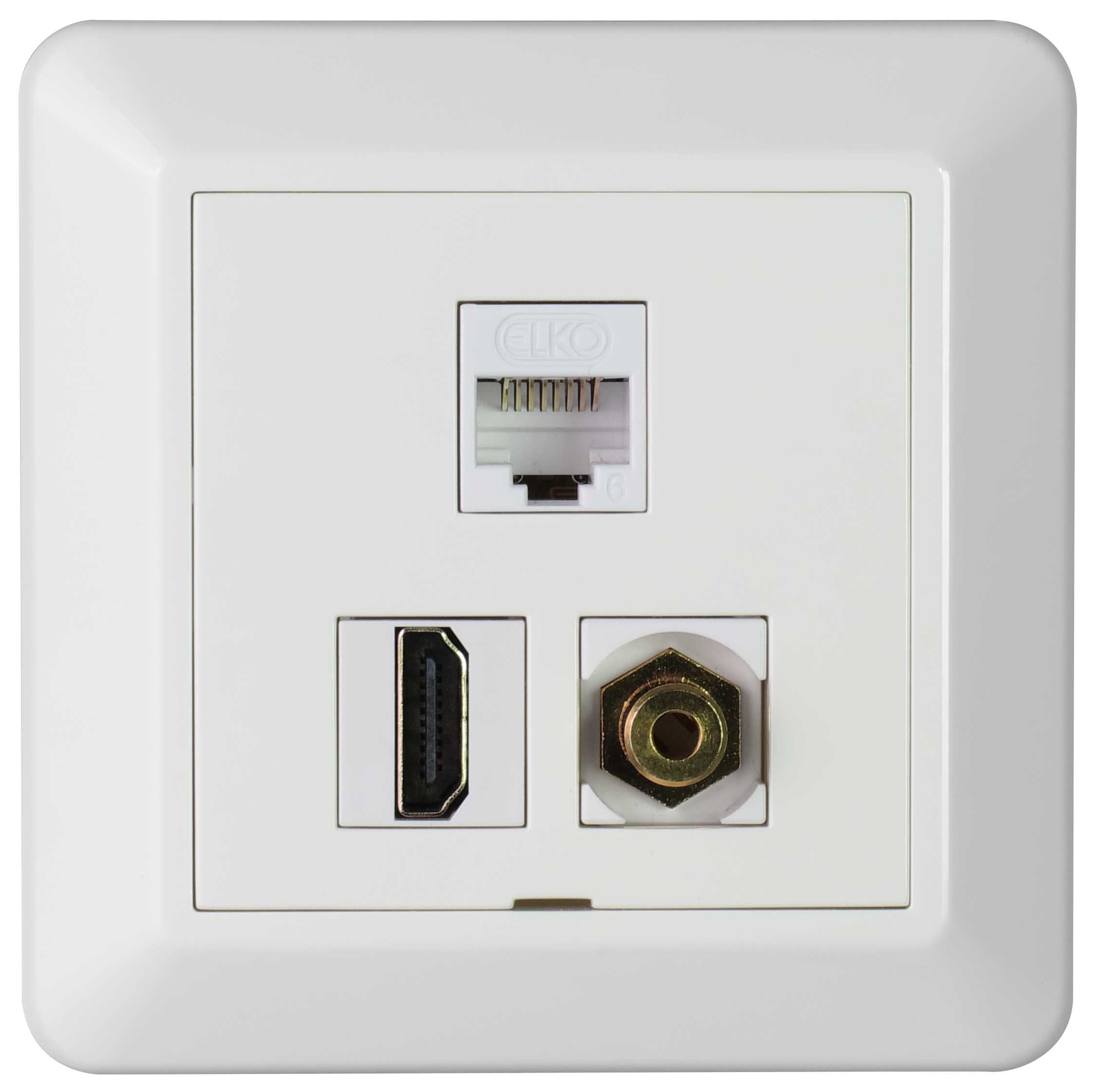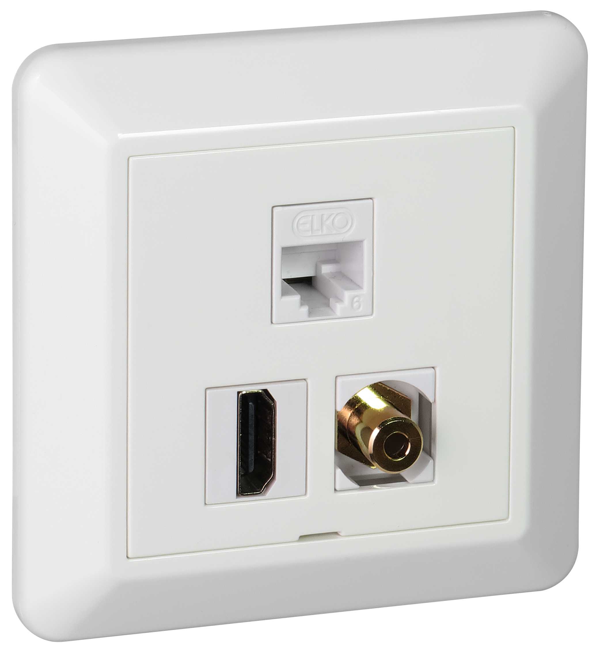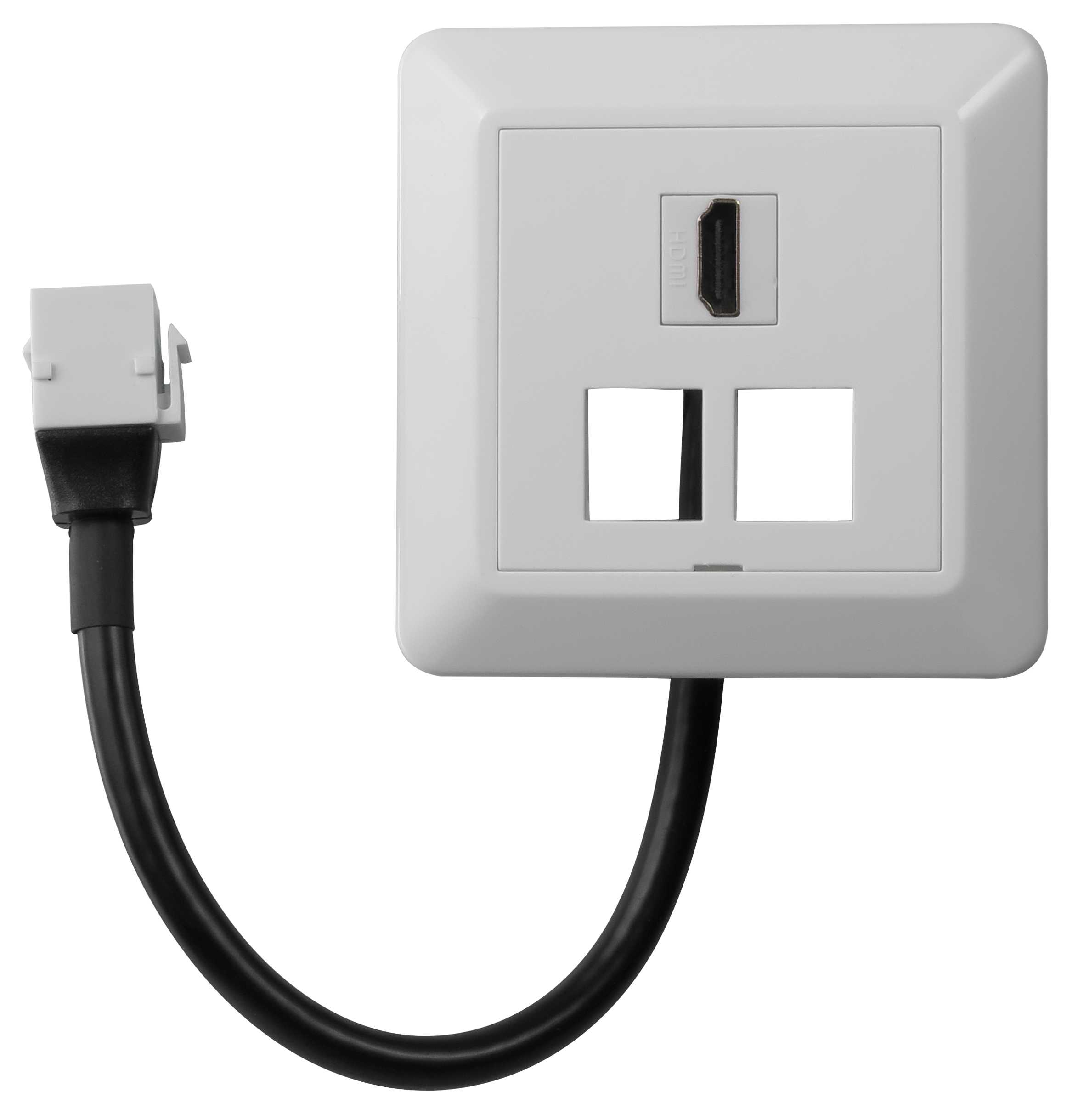 ELKONNEKT HDMI kontakt. 20cm kabel med HDMI hunn kontakt i begge ender. Kontakten har Keystone hullbilde tilpasset ELKO sentralplater. Benyttes der det ønskes HDMI uttak i en sentralplate. En HDMI kabel kan legges skjult i veggen for å termineres i HDMI tilkoblingen i veggboksen. Ny HDMI kabel til f.eks TV eller kilde kobles til i vegguttaket med en ny HDMI kabel. Passende ELKO Keystone sentralplate i RS16 og ELKO Plus alle farger el.nr: 69 412 81/82/83/84.