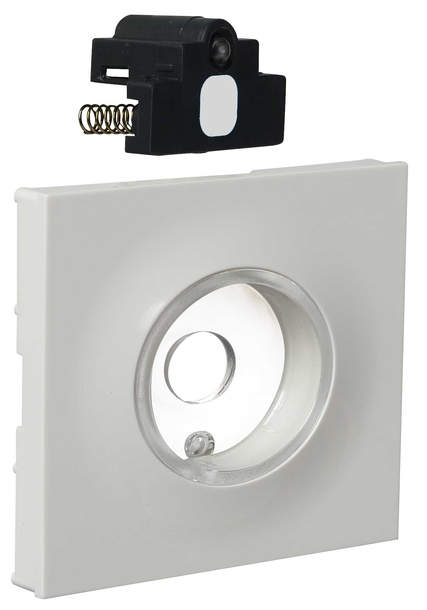 Leveres med hvit lysdiode og sentralplate i fargene polarhvit, aluminium og sort.