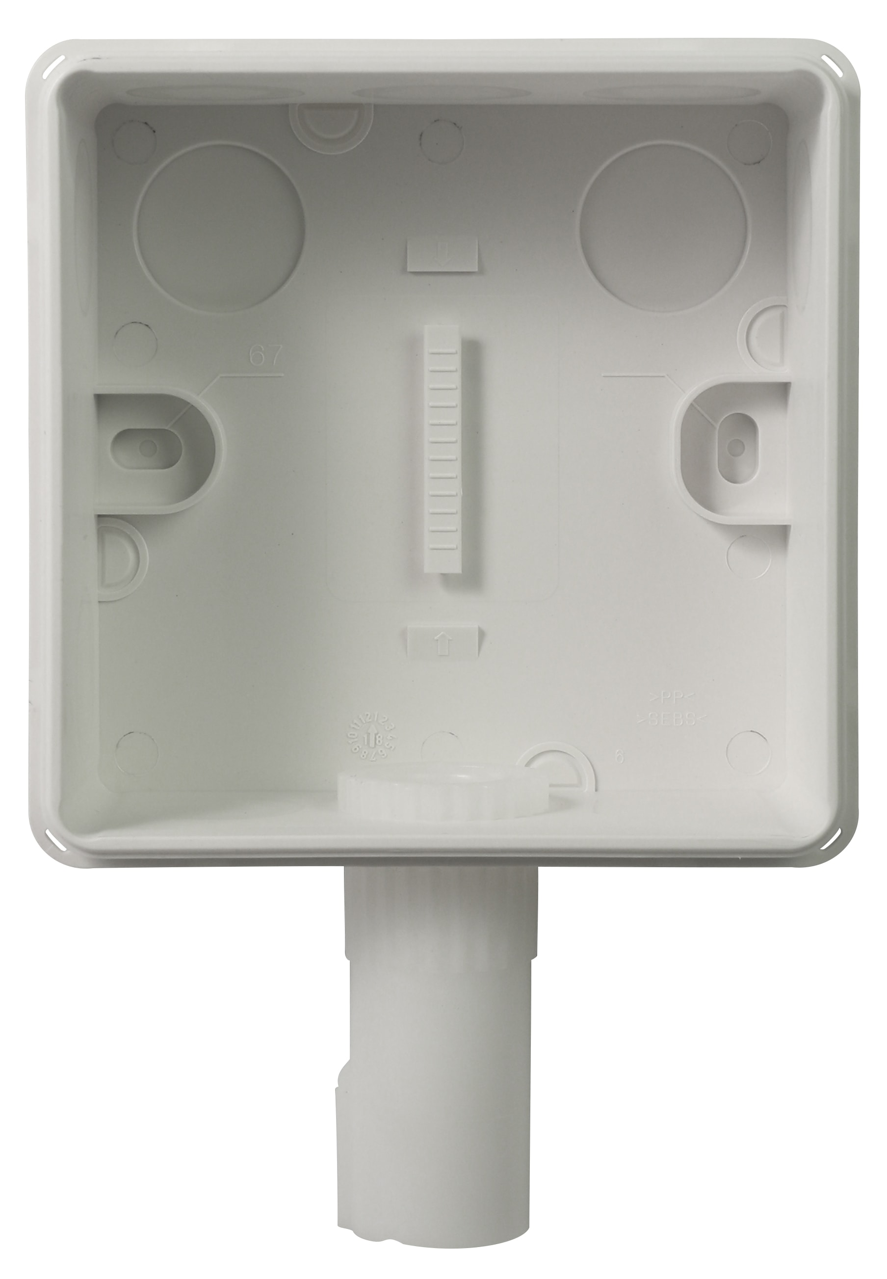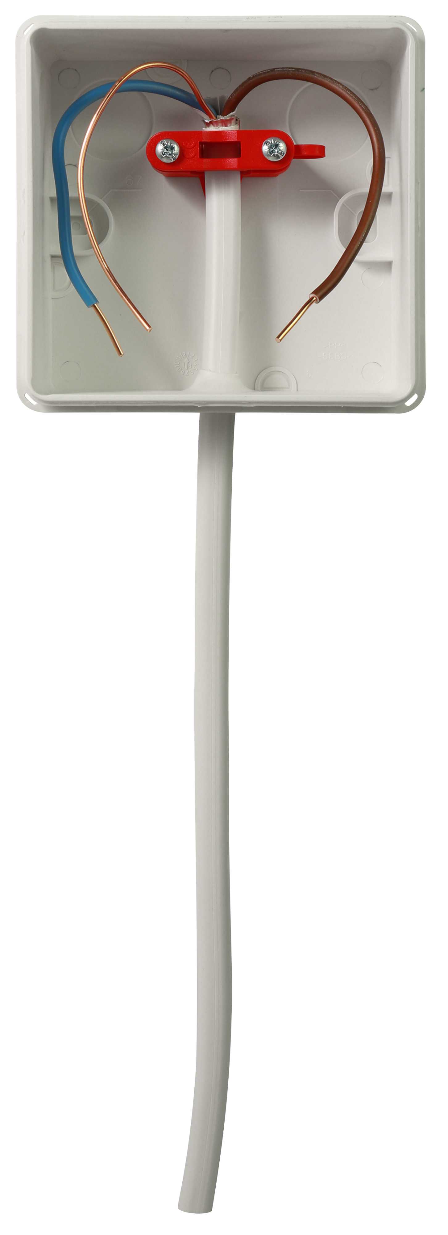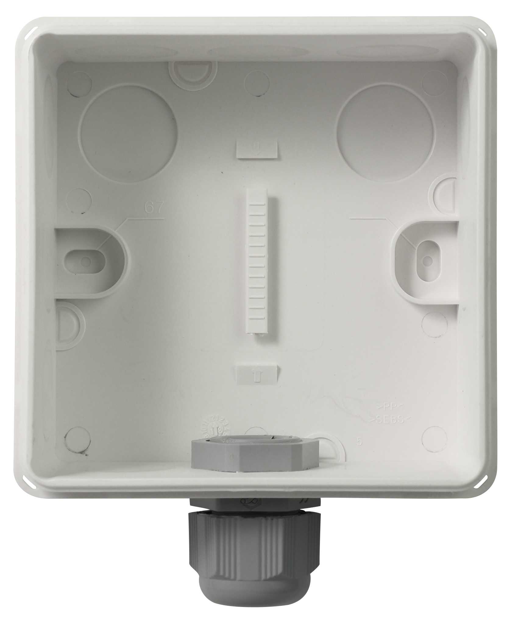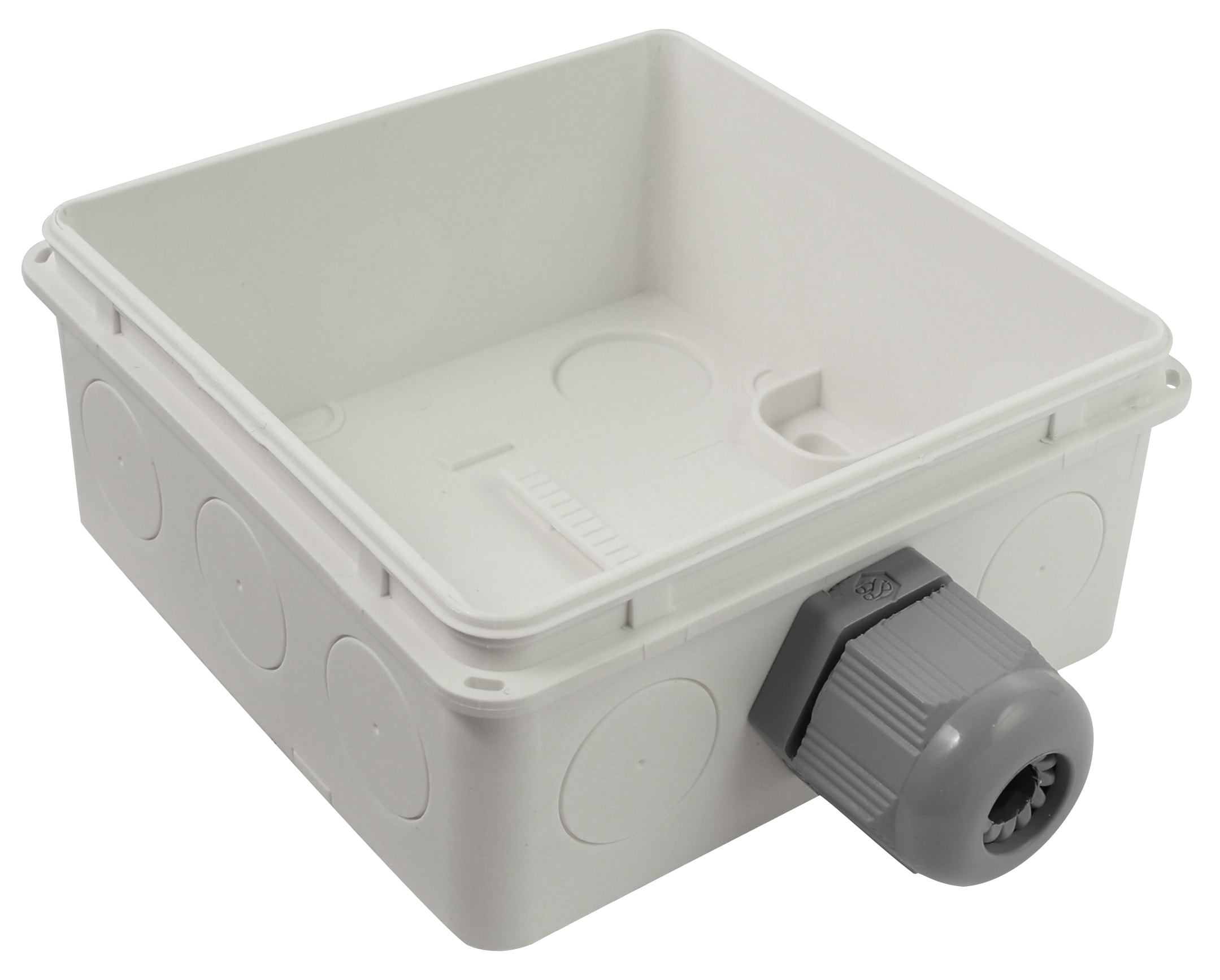 Leveres uten koblingsklemmer, godkjent for 6 koblinger/max 20 ledere med 1,5mm², eller 5 koblinger/max 15 ledere med 2,5mm². Hulltaking bør kun utføres med kabel, slik at membranen omslutter kabelen på riktig måte. Åpne dreneringshull ved montering.