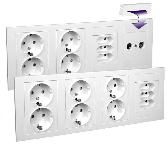 Sidedel for bruk i rammer for dobbelstikkontakter, der det skal monteres produkter med standard 56mm x 56mm sentralplate.