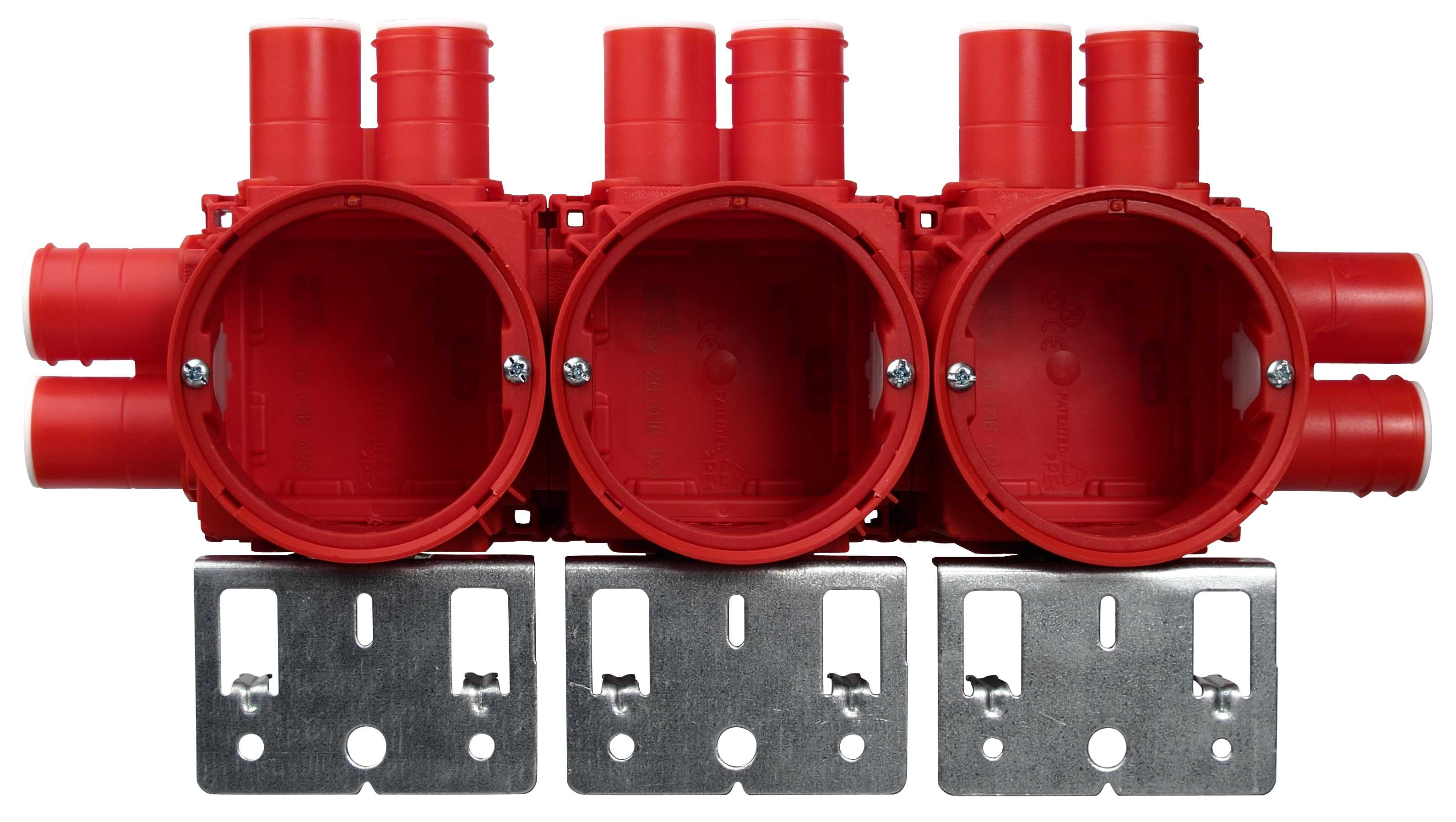 Kombinasjonsplaten leveres med avtagbare mellomstykker som kan fjernes ved montering av doble og triple stikkontakter.