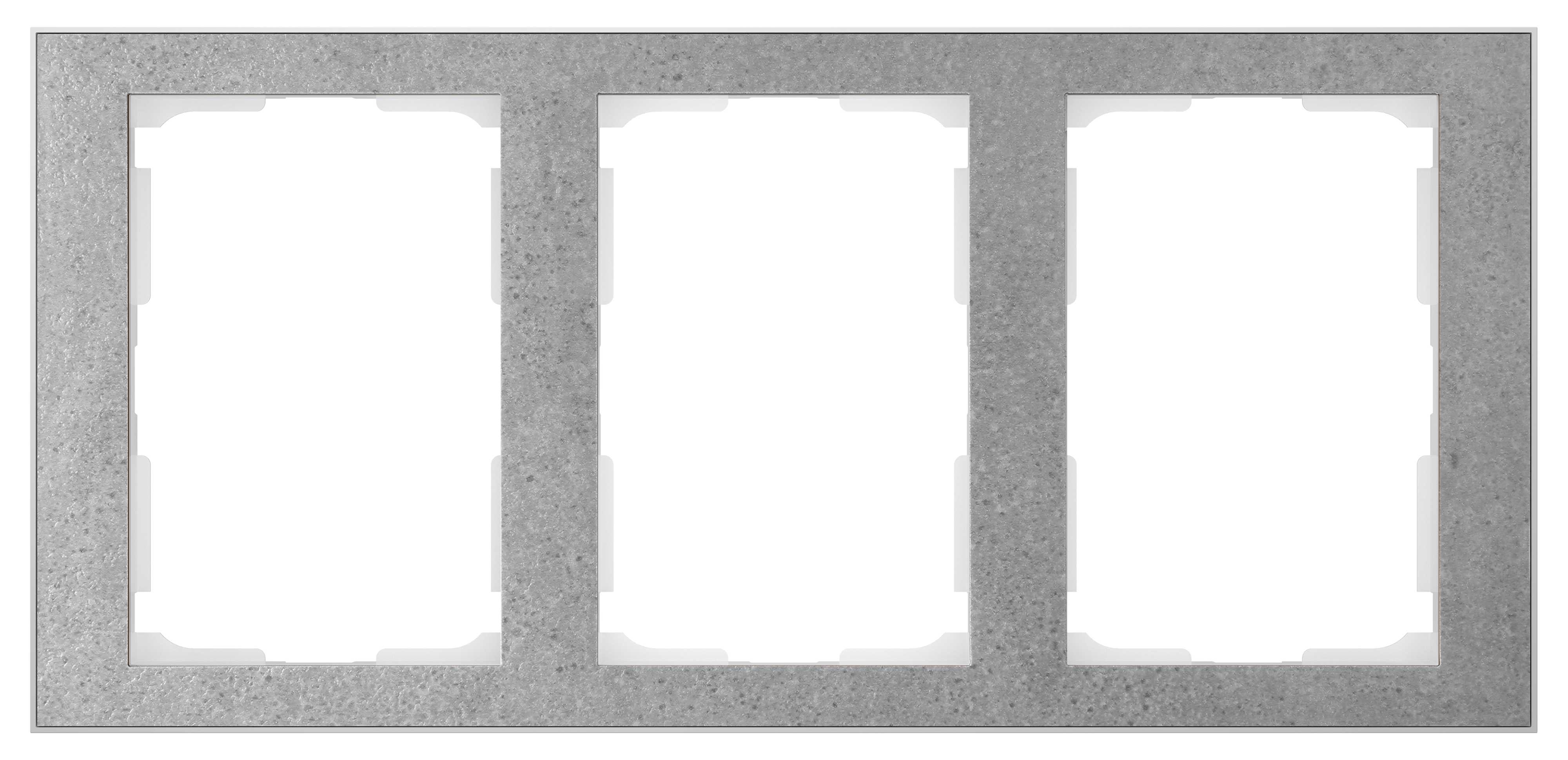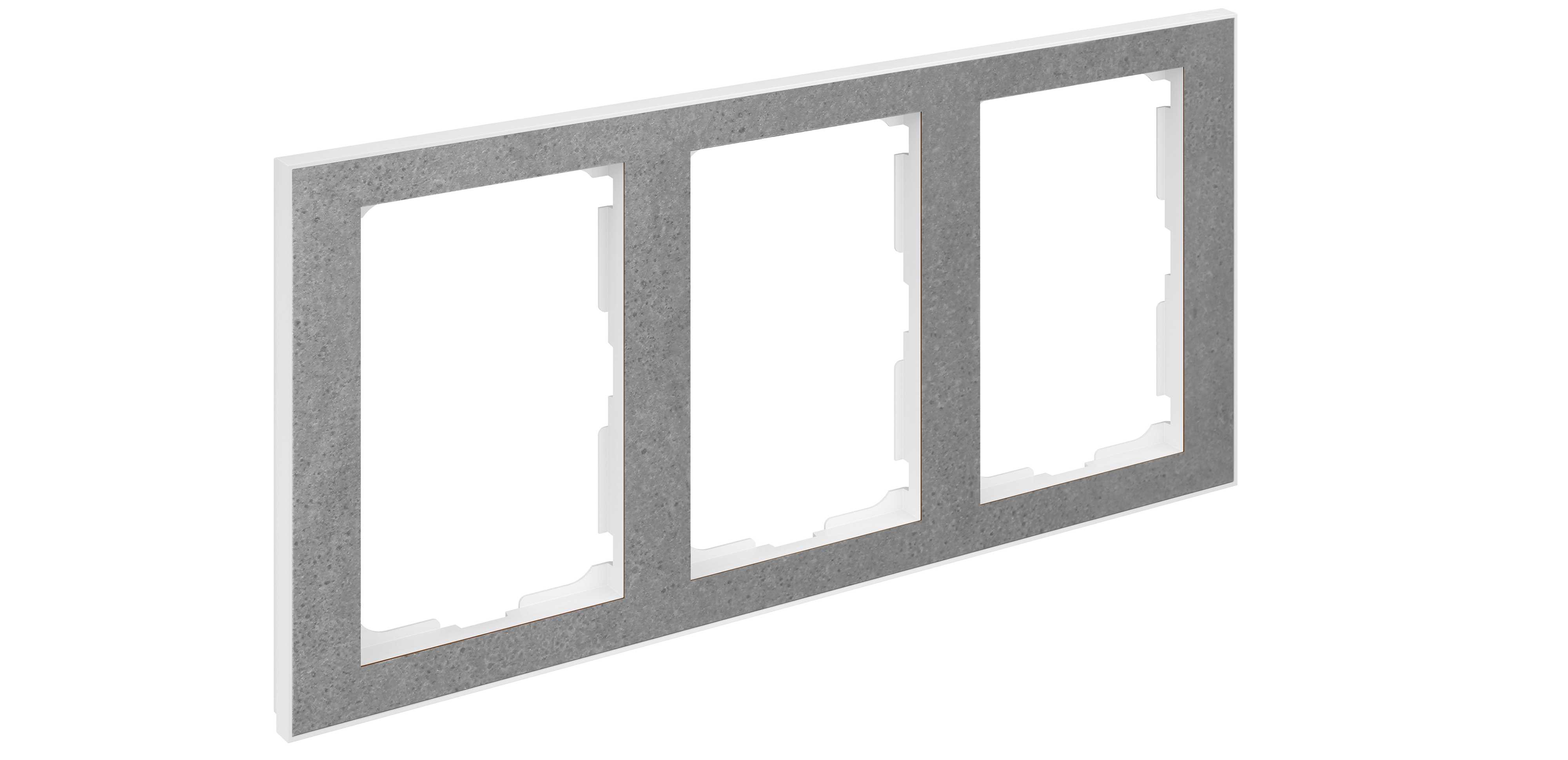 ELKO Plus Layer ramme for stikkontakt 3 hull med betong laminat og polarhvit bakramme. For enkel ELKO Plus stikkontakt i 1,5H veggboks eller ELKO Plus rehab stikk i 1H veggboks.