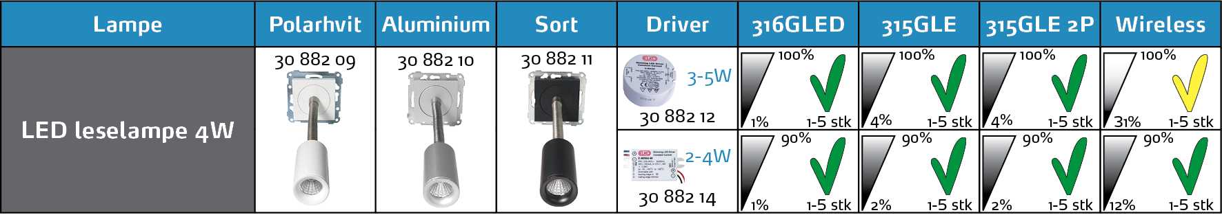 Egnet for antall lyskilder/pærer (LEDmoduler):