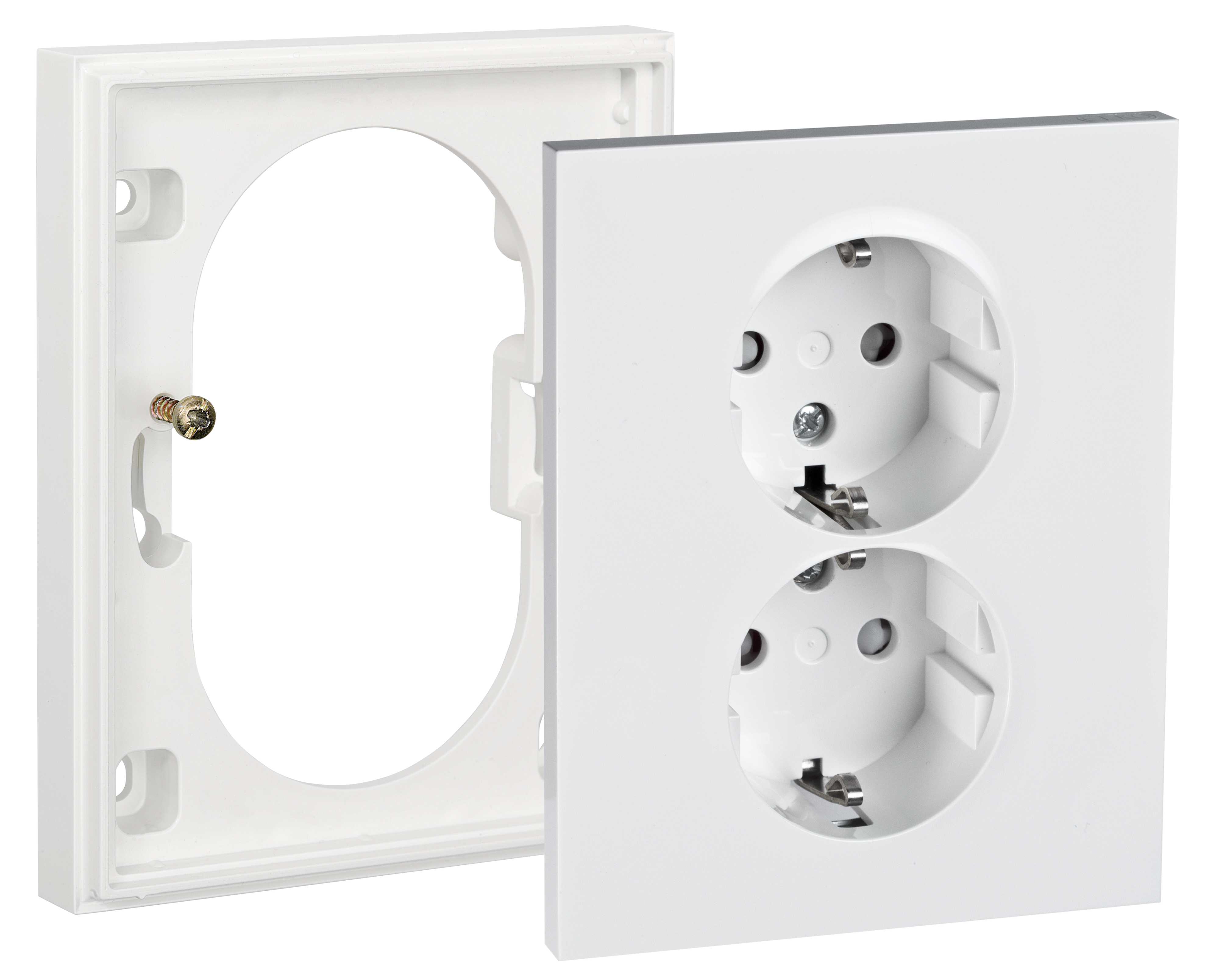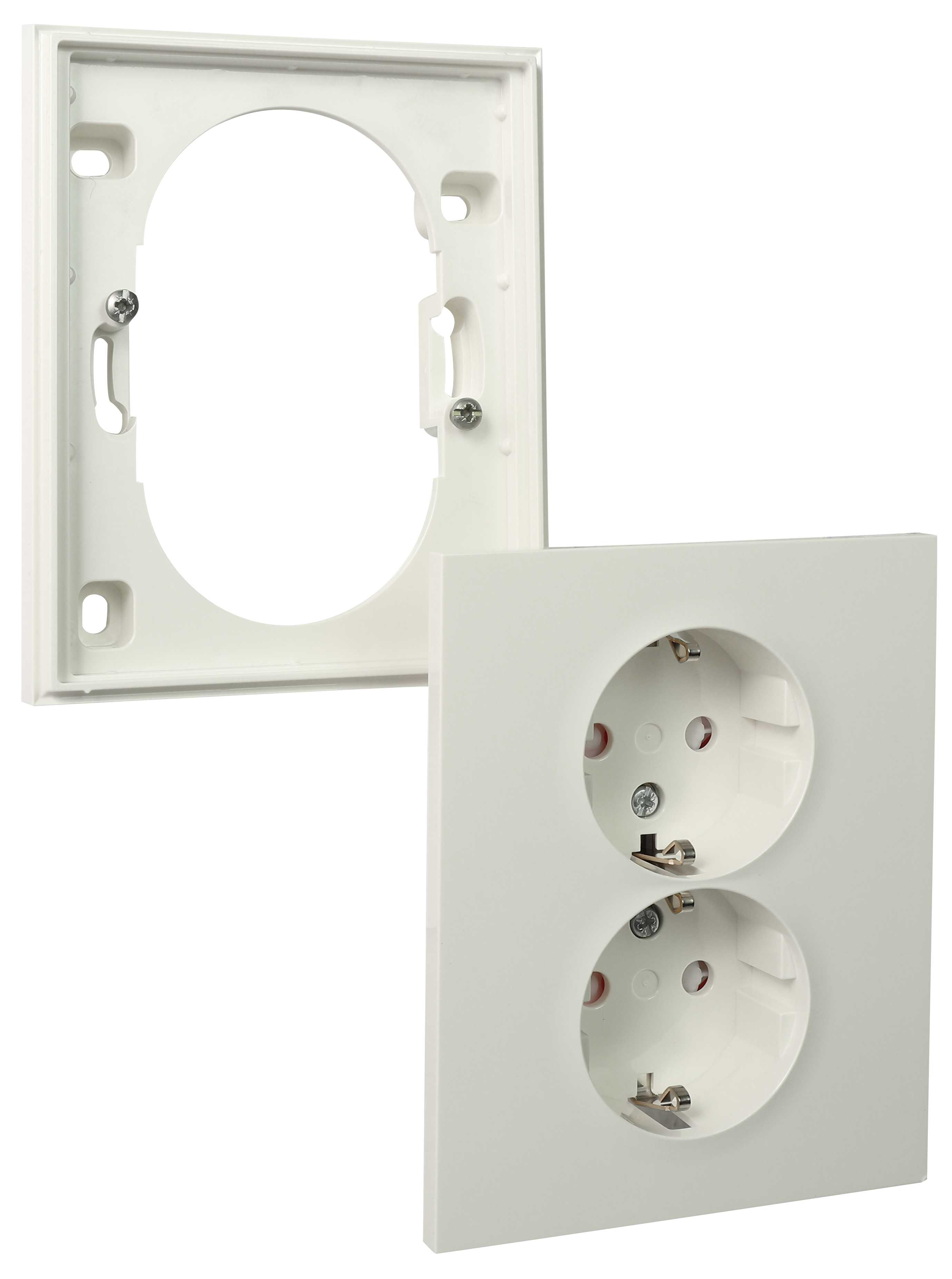 Forhøyningskappe og deksel ELKO Plus dobbel stikkontakt.