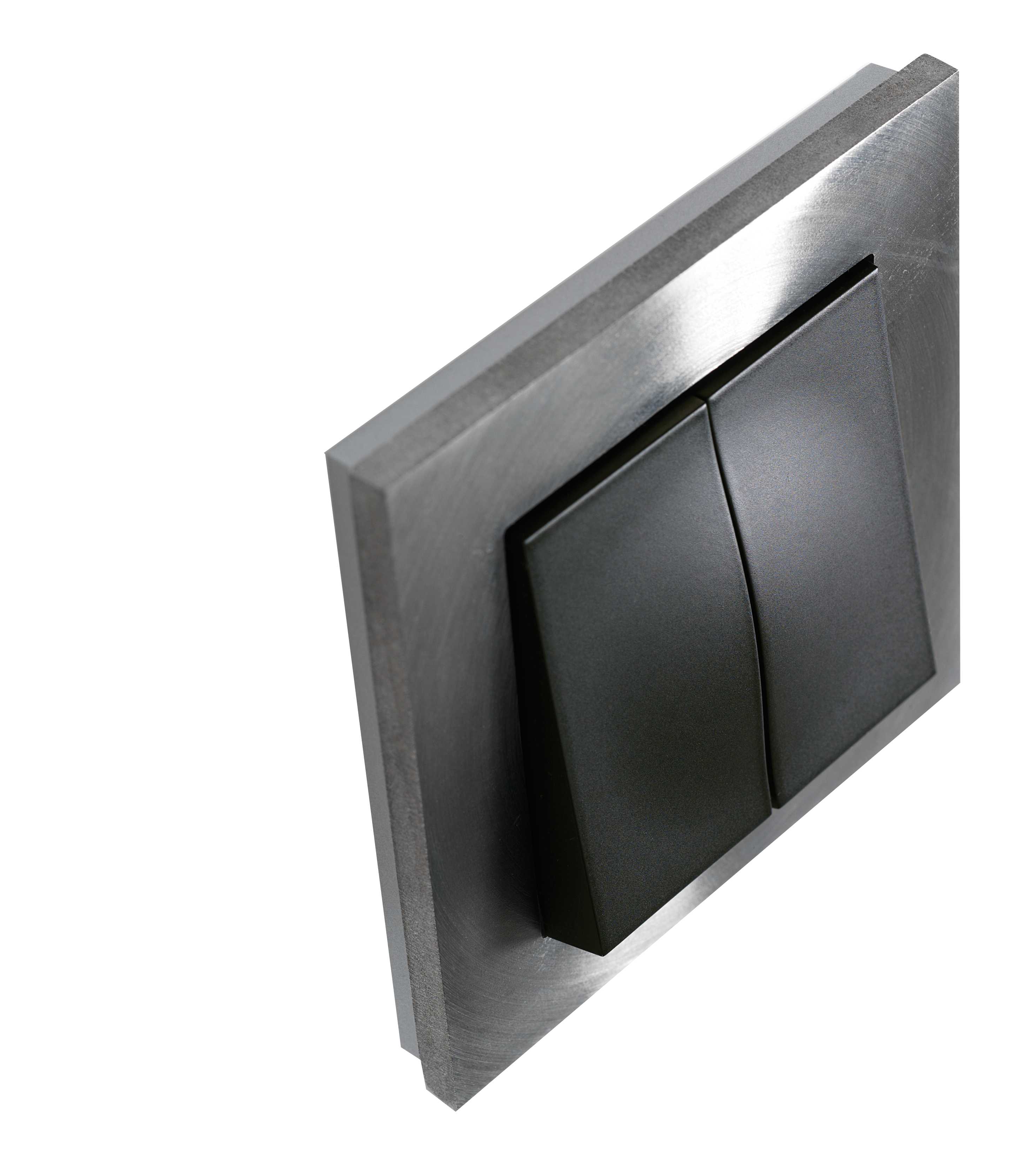 ELKO Plus OPTION er en rammeserie utviklet av ekte foredlede naturmaterialer. Vanlig ELKO Plus materiell i polarhvit, aluminium og sort er kompatible med OPTION rammene.