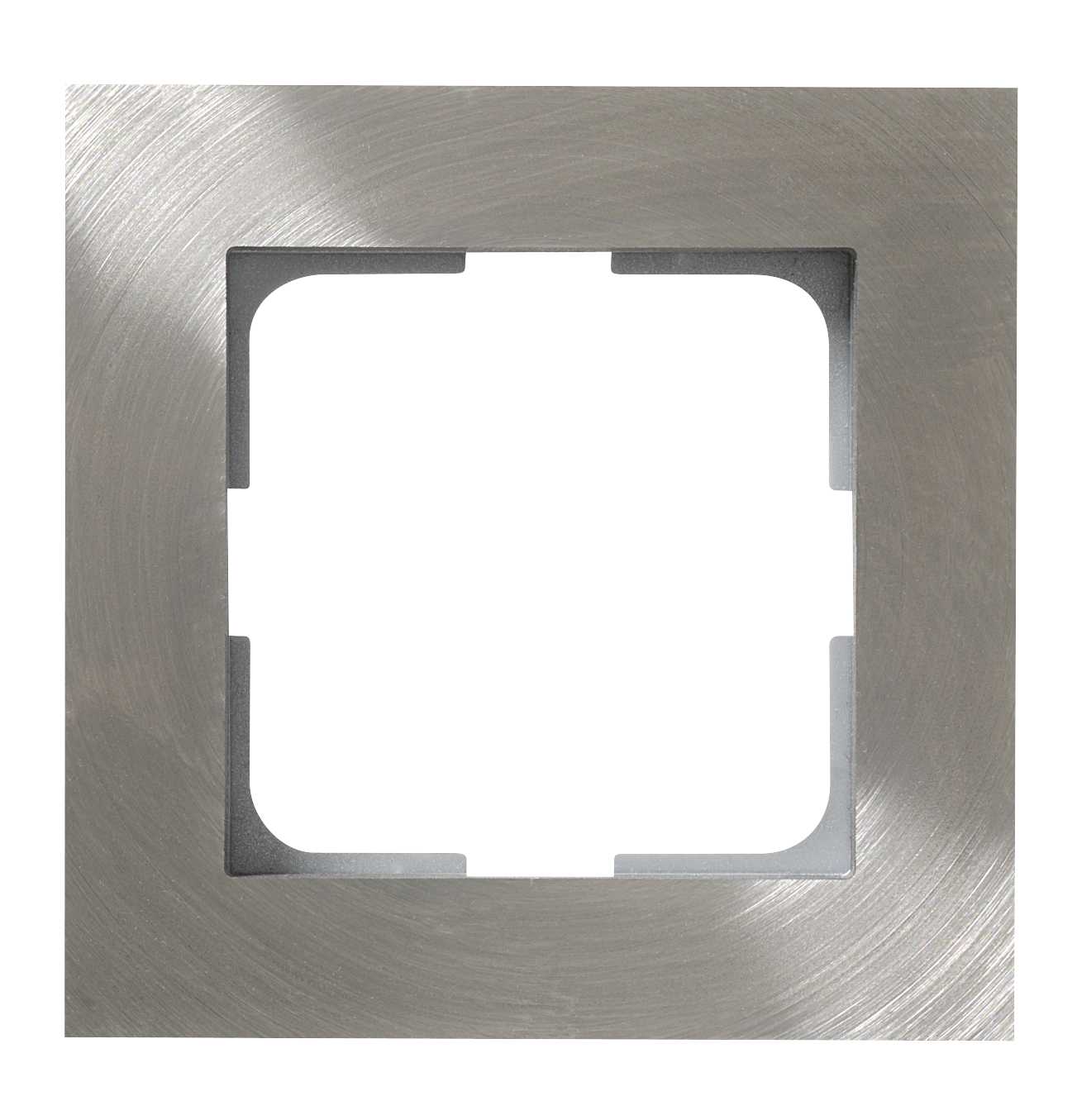 ELKO Plus OPTION Stål sirkulær er en matt sirkulærslipt børstet stålramme, for et annerledes uttrykk rundt dimmere, brytere eller annet ELKO Plus materiell. Stålrammen leveres kun som enkelramme.