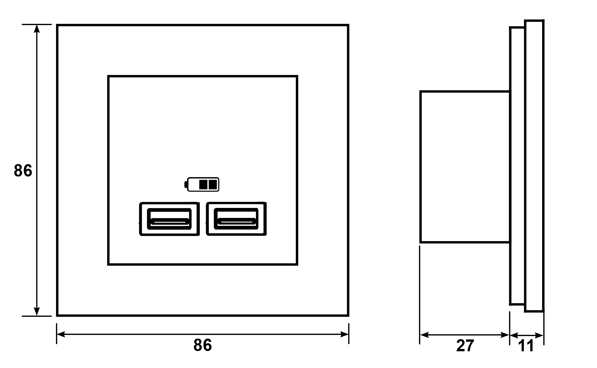 Innbygningsdybde: 27mm