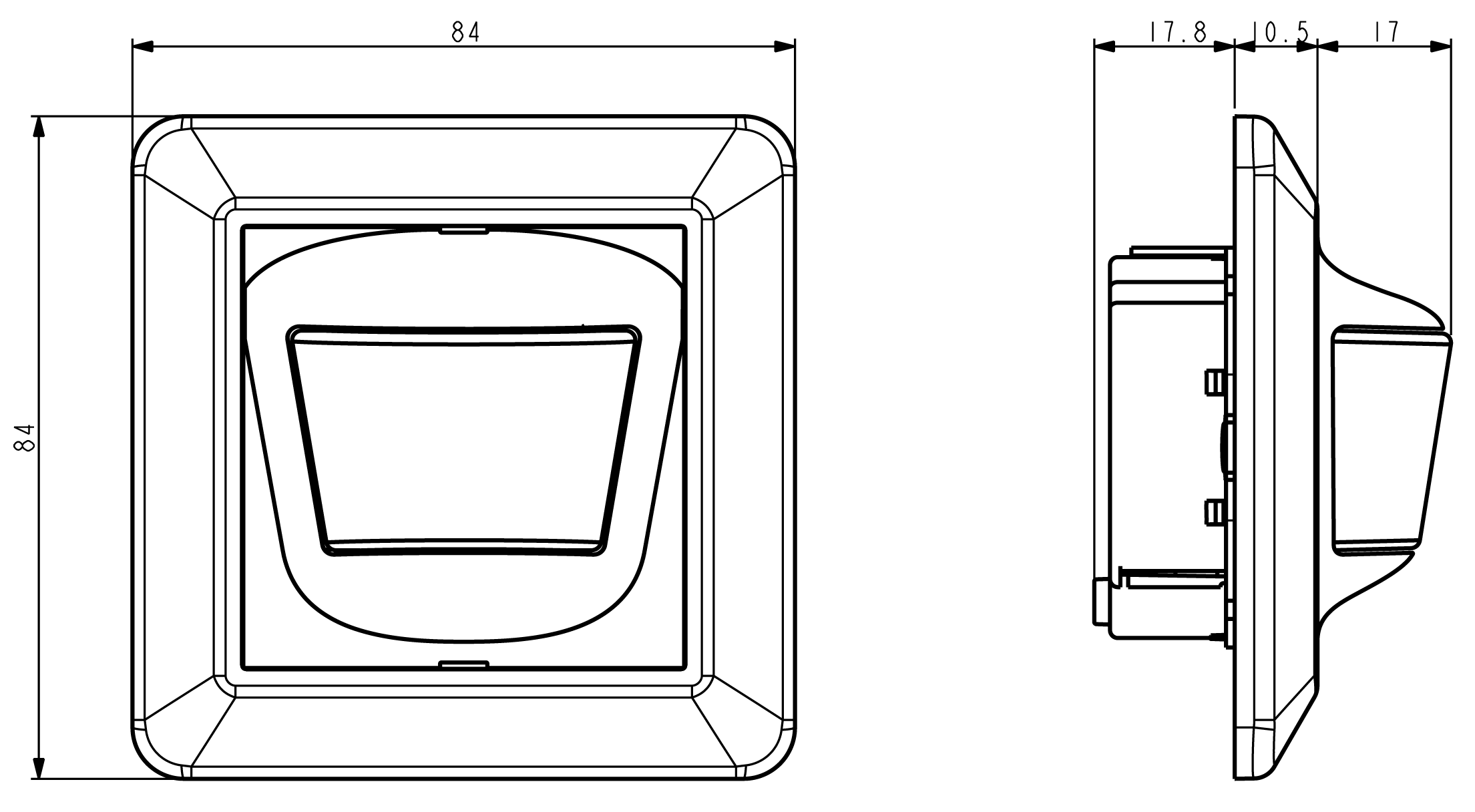 Svingradius sensor, horisontal: