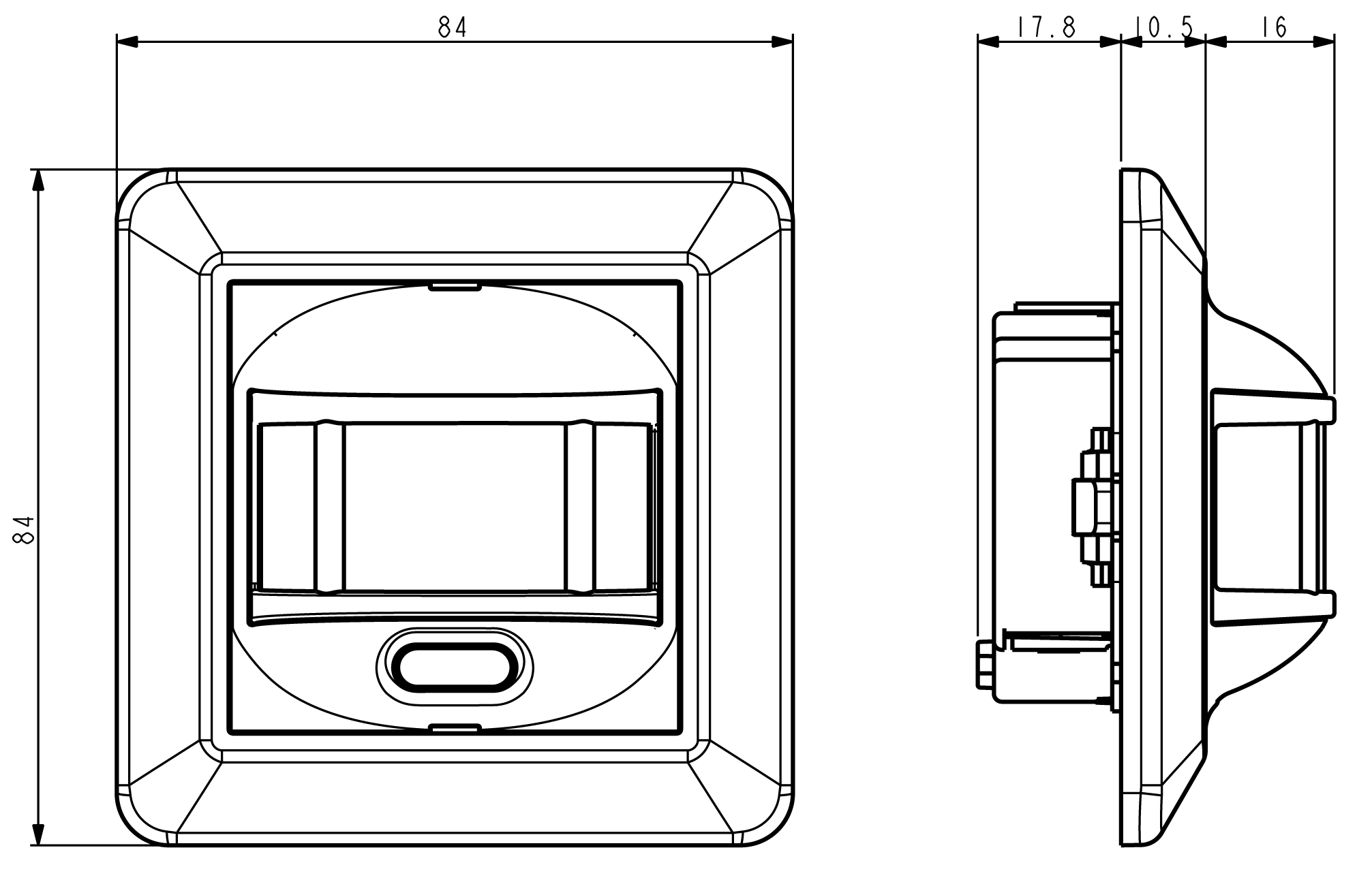 Svingradius sensor, horisontal:
