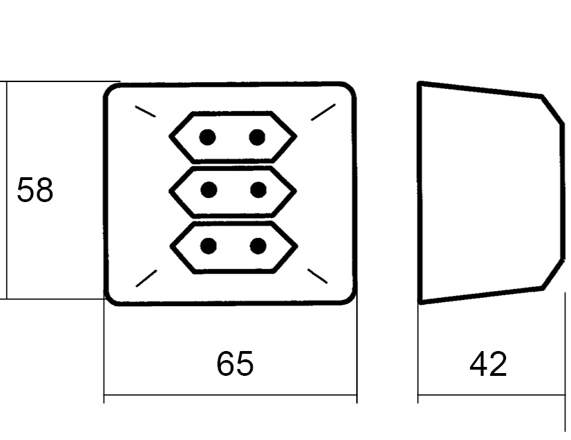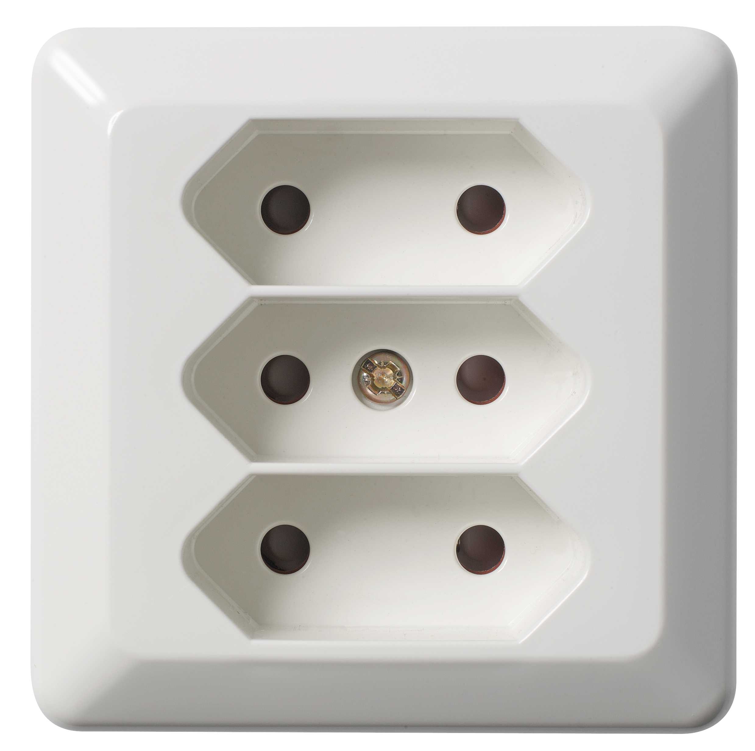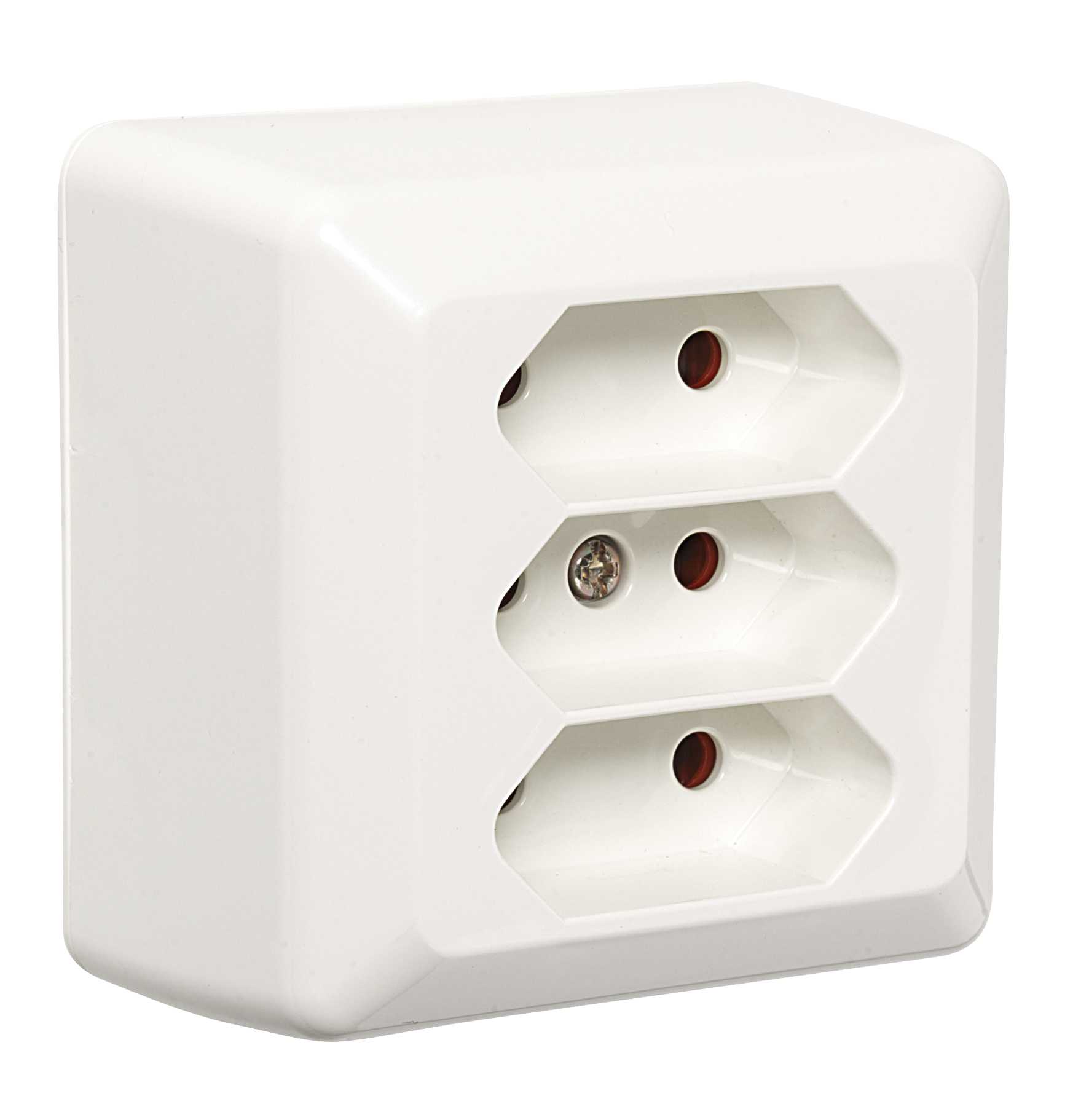 Påvegg 3-veis Euro-stikkontakt i ELKO RS16 design for tilkobling av dobbeltisolerte apparater ( klasse II) med 2,5A Europlugg.
