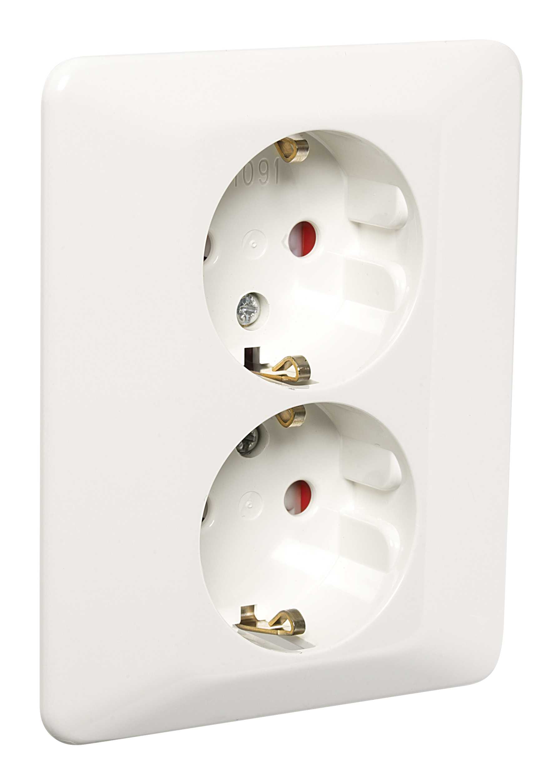 Lav stikkontakt bygger kun 9mm ut fra veggen. Stikkontakten passer kun i 1,5 veggboks.
