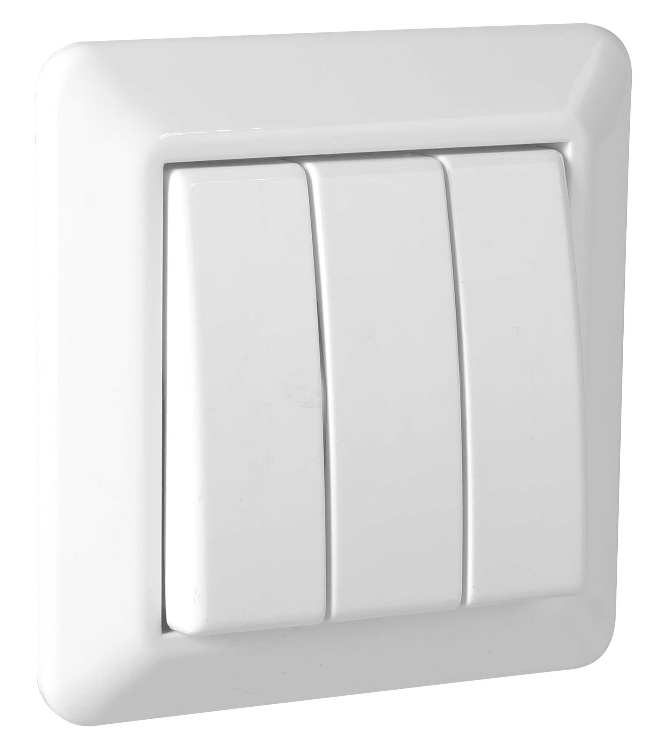 Bryteren er 3x1-polet, og benyttes oftest i stue, kjøkken eller soverom der man ønsker å slå av/på lyset med en bryter.