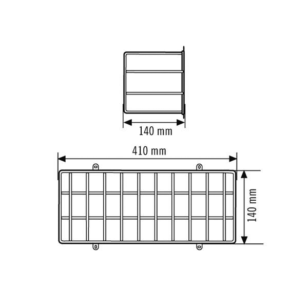 Kabinettmateriale metall, Mål ca. høyde 140 mm x bredde 410 mm x dybde 140 mm, Farge hvit, tilsvarende RAL 9010
