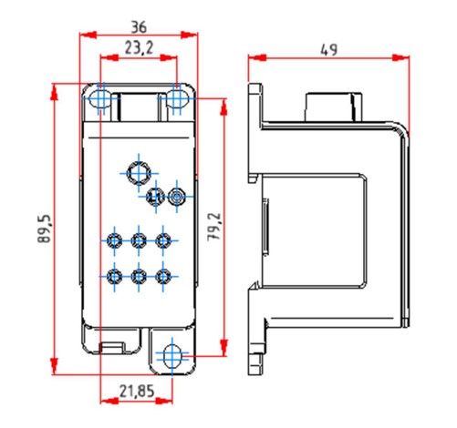 – DIN-skinne med låseklips, samt sammenkoblingsfester.