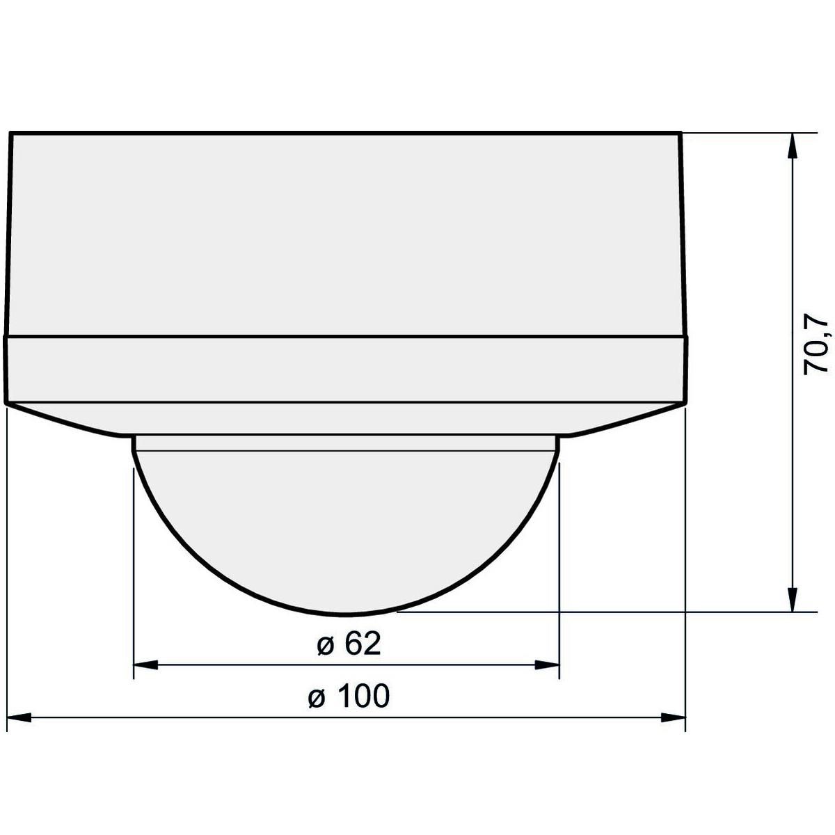 - Rekkevidde: Sensoren ser et felt med diameter ø37 m (målt på gulvet) ved en monteringshøyde 3 meter.